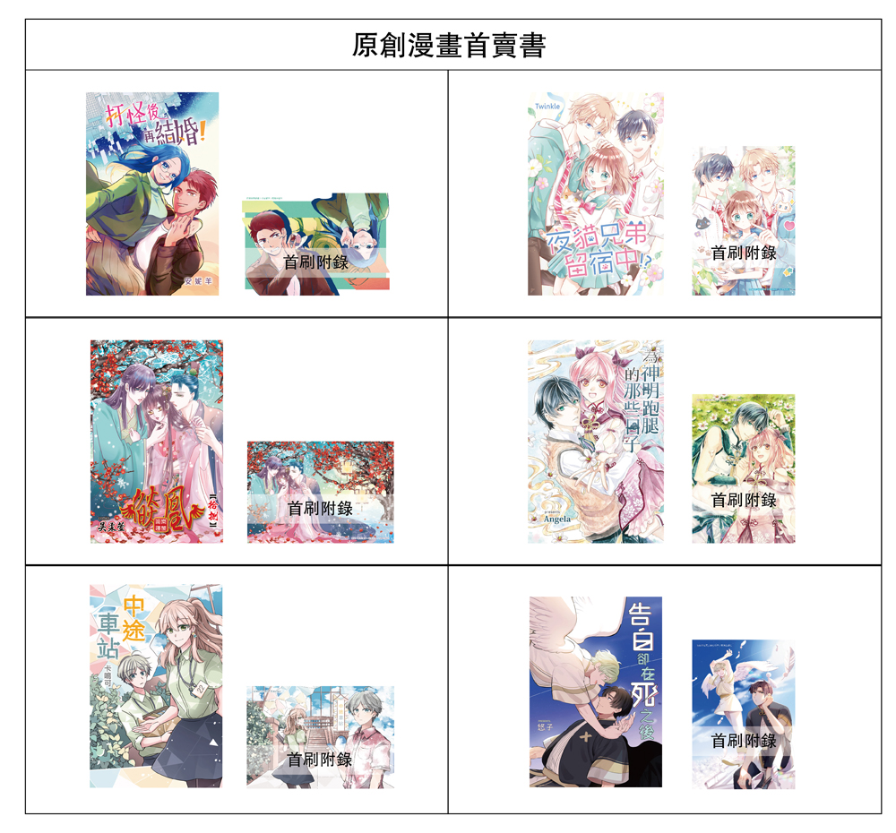 在原創作品的部分,今年有多達五部的女性向作品以及一部耽美向作品,讀者敲碗的人氣漫畫家分別推出新作與續集;2020原創漫畫暨劇本創作競賽金獎得主安妮羊老師的打怪系列新作!《打怪後再結婚!》來自外星的不速之客,將仁川捲入一場又一場的磨練之中…!並將同步推出限定特裝版,喜愛安妮羊老師的粉絲絕不能錯過! Twinkle《夜貓兄弟留宿中!? 》被耍得團團轉(?的貓貓愛情喜劇!!本應是民宿客人的兄弟倆...竟然在半夜變成貓了!?最受歡迎的吳柔萱《燄凰~凝秦遺夢~》(18),眾人期待滿滿的最新續集,因果輪迴起源,神魔界記憶逐漸復甦!!Angela《為神明跑腿的那些日子 》神明派下的任務看似微不足道,卻能讓人重新獲得前進的勇氣!