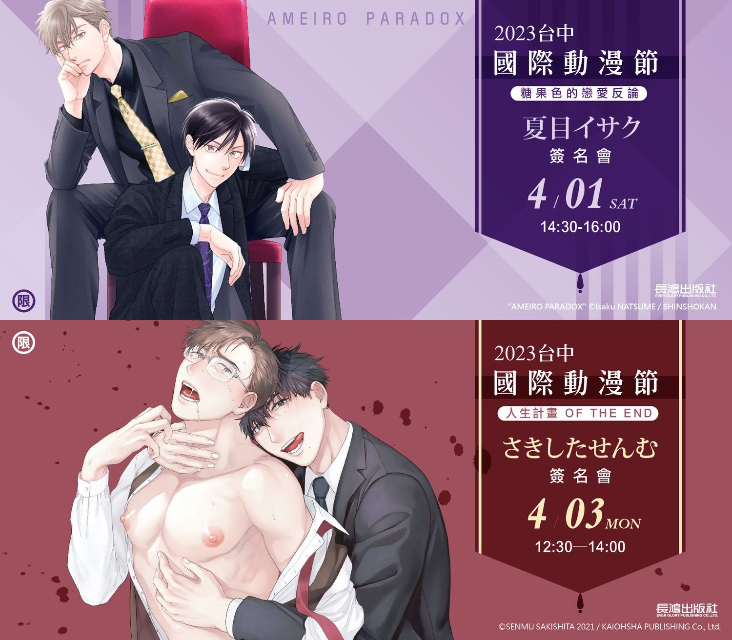 2023台中國際動漫節,長鴻出版社邀請BL漫畫作者夏目イサク及さきしたせんむ兩位老師來台舉辦簽名會。
