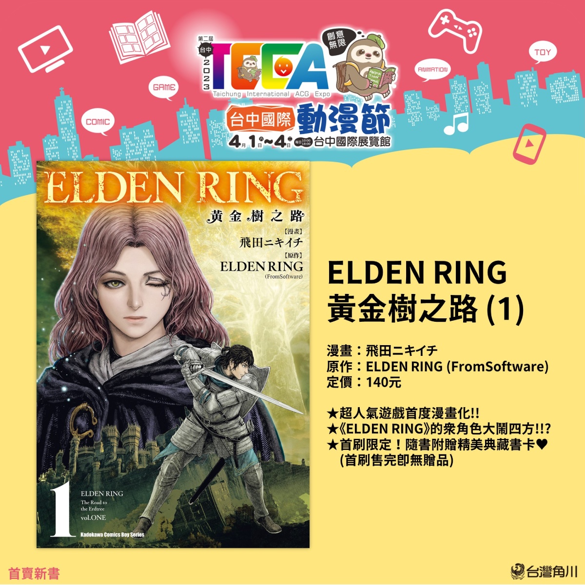 粉絲期盼已久,以超人氣奇幻動作 RPG《艾爾登法環》眾角色展開冒險的搞笑漫畫《ELDEN RING 黃金樹之路 (1)》將於台中國際動漫節首賣登場!講述褪色者「褪夫」被謎之少女指引前往黃金樹,途中經歷各種九死一生的爆笑冒險旅程,實體書追加收錄「單行本特繪頁面」,精彩內容不能錯過!超人氣輕小說《約會大作戰 DATE A LIVE 安可短篇集 (11)》與改編TV動畫大好評的異色神作漫畫《異世界歸來的舅舅 (8)》都將於台中動漫節展場搶先推出特裝版與一般版首賣新書,4/6全台通路上市。