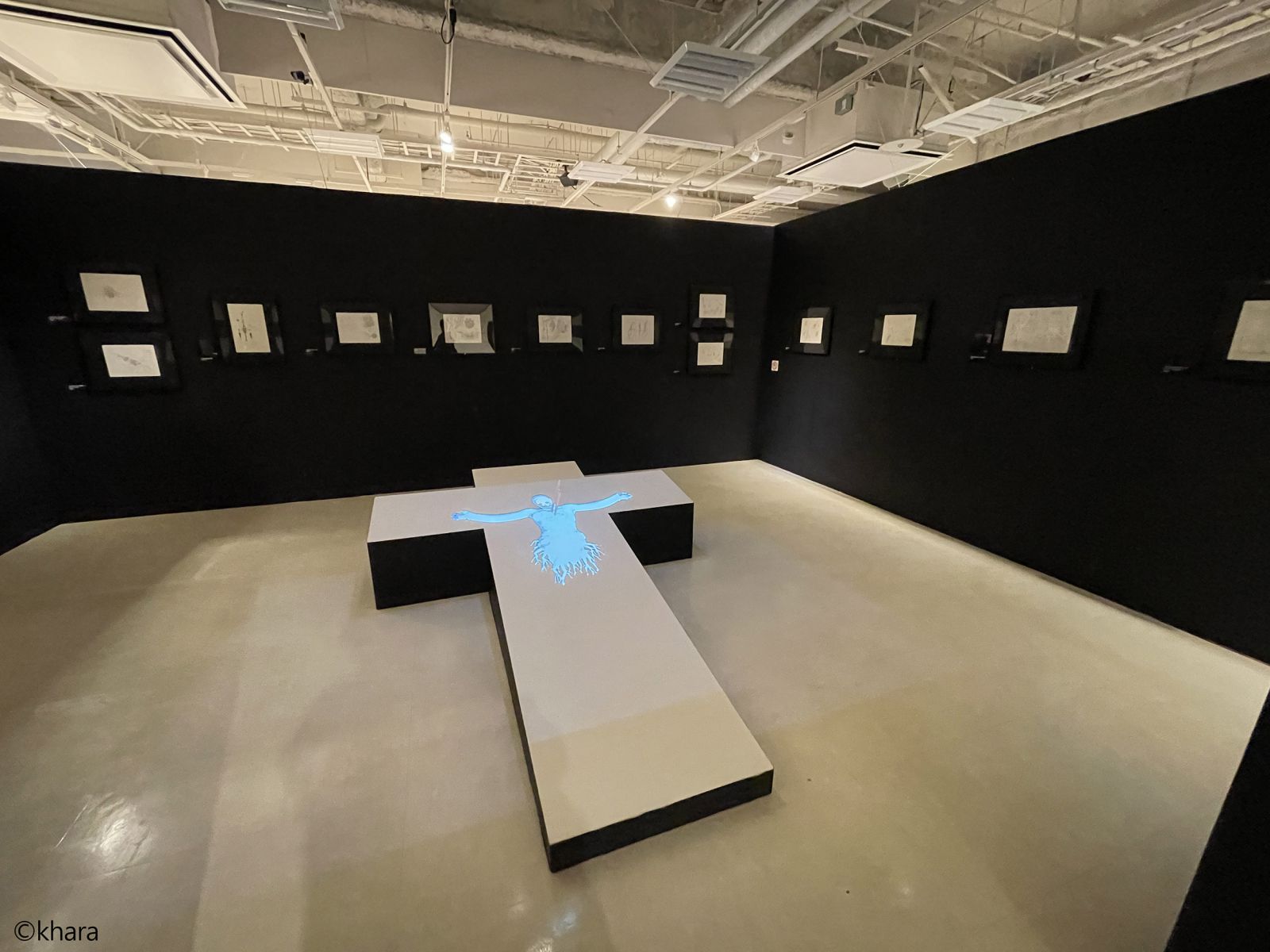 「第二章 劇場區」可欣賞到Studio Khara與營運NICONICO動畫的DWANGO公司,在2014年開展的共同企劃「Japan Anima(tor)'s Exhibition」中,由平松禎史、串田達也搭配鷺巢詩郎音樂所製作,雖沒有台詞卻能激起神秘情感氛圍的影片《until You come to me》。而在「第三章 原畫中的新世紀福音戰士」中,則可以觀賞到由動畫師手工繪製約230幅新劇場版的複製原畫,還有深受粉絲喜愛的使徒設定。請務必親身感受手工所描繪出的細膩與和美學意識。