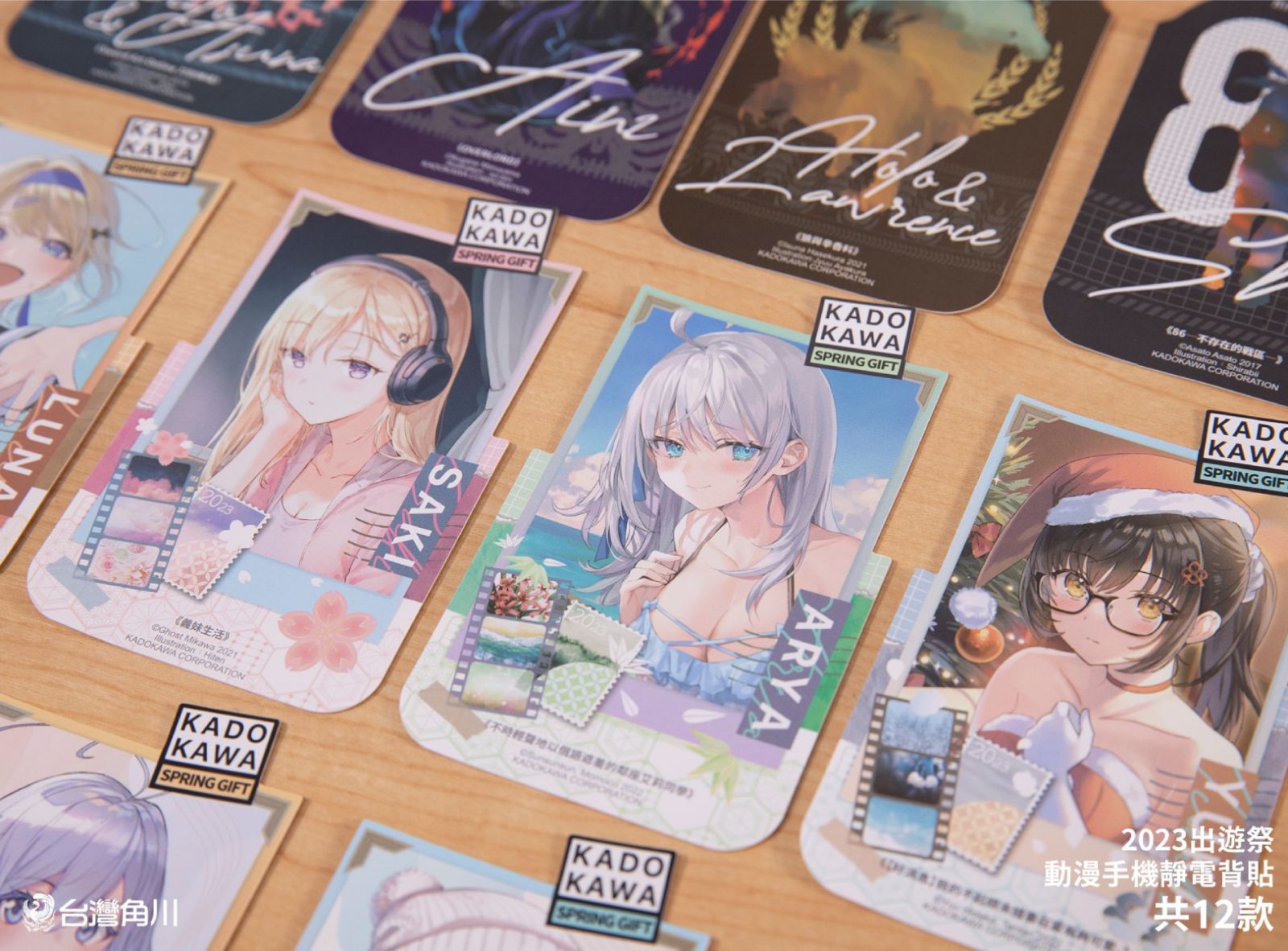 台灣角川全書系活動「2023春之出遊祭」消費滿350元贈「動漫手機靜電背貼」;分為「四季風格」共8款與「印象設計」共4款