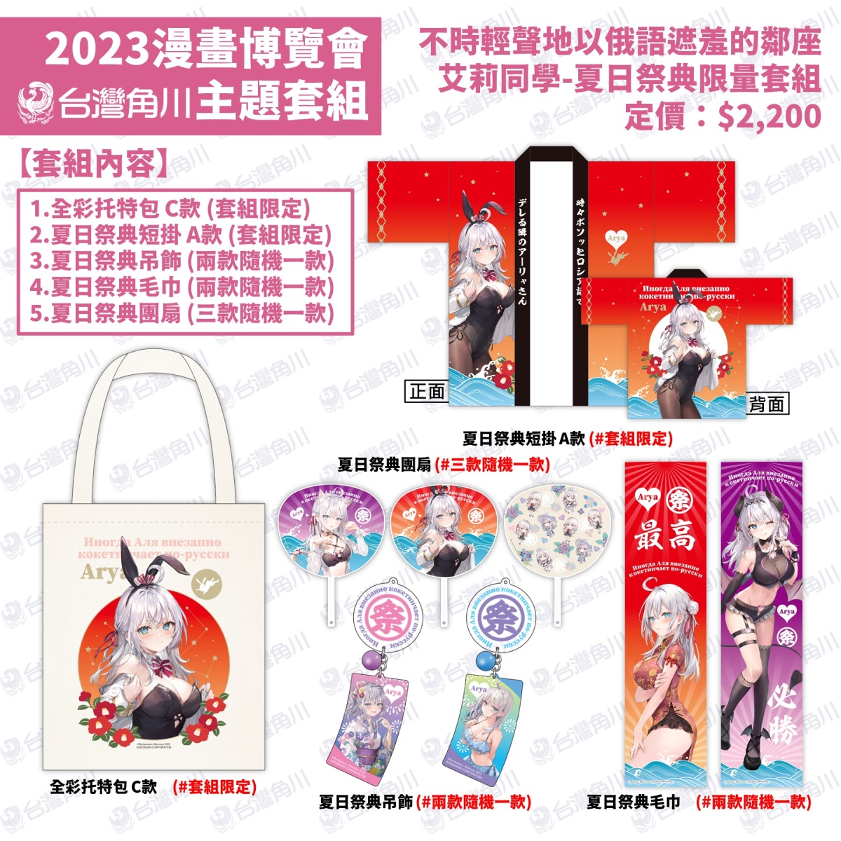 【2023年6月28日新聞稿】將於七月底盛大開展的「2023漫畫博覽會」,除了精彩簽名會活動與多部人氣新刊與特裝版首賣之外,台灣角川將帶來超過66款展場首賣的動漫周邊精品及4款超人氣主題套組!近期宣布將進行動畫化改編的大勢輕小說《不時輕聲地以俄語遮羞的鄰座艾莉同學》、廣受好評的戀愛生活小說《義妹生活》、邊緣人男友×萬人迷女友譜出的純愛戀曲《位於戀愛光譜極端的我們》,除了全新精品首賣,更首度推出限量主題套組──精選多款夢幻珍品一次收藏!會場獨家限定限量售完為止,有興趣的粉絲千萬不能錯過!此外,榮獲第六屆カクヨム網路小說大賽「戀愛喜劇部門」特別賞,漫博首賣人氣作《我和班上第二可愛的女生成為朋友》、第26回電擊小說大賞「金賞」得獎作品《豬肝記得煮熟再吃》、播放次數突破9000萬的超熱門歌曲小說《再見宣言系列》以及「這本漫畫真厲害!2023」(寶島社刊)男性篇排行榜第一名的青春恐怖漫畫《光逝去的夏天》都將推出全新周邊精品於2023漫畫博覽會展場首賣!