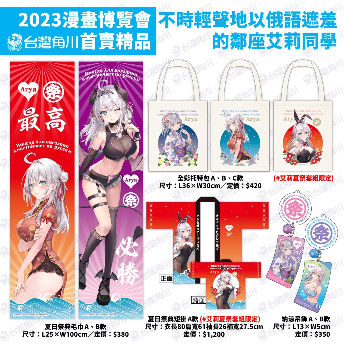 《不時輕聲地以俄語遮羞的鄰座艾莉同學》將開放會場獨家預購「艾莉偶像Ver.等身大掛軸」,同步登場的線上漫博將另開放預購「艾莉哥德風洋裝Ver.大掛軸」,並推出一系列夏日祭典主題精品──套組限定「夏日祭典短掛」以及「毛巾」、「納涼吊飾」、「團扇」等;《義妹生活》套組限定「複製簽名滑鼠墊」;《位於戀愛光譜極端的我們》套組限定「複製簽名色紙」;《我和班上第二可愛的女生成為朋友》首推「掛物壓克力立牌」、《豬肝記得煮熟再吃》則推出潔絲與豬豬相伴的超Q「搖搖立牌」萌度破表!人氣作《再見宣言系列》及《光逝去的夏天》也首度推出立牌徽章等多款質感精品!更多台灣角川2023漫博首賣精品資訊請至官網查詢 https://kadokado.io/6wD1R。