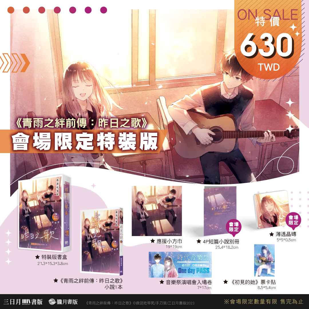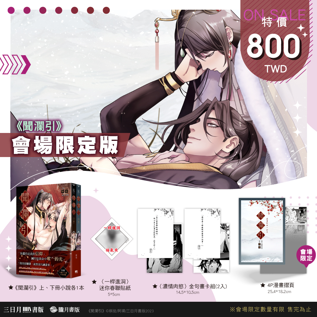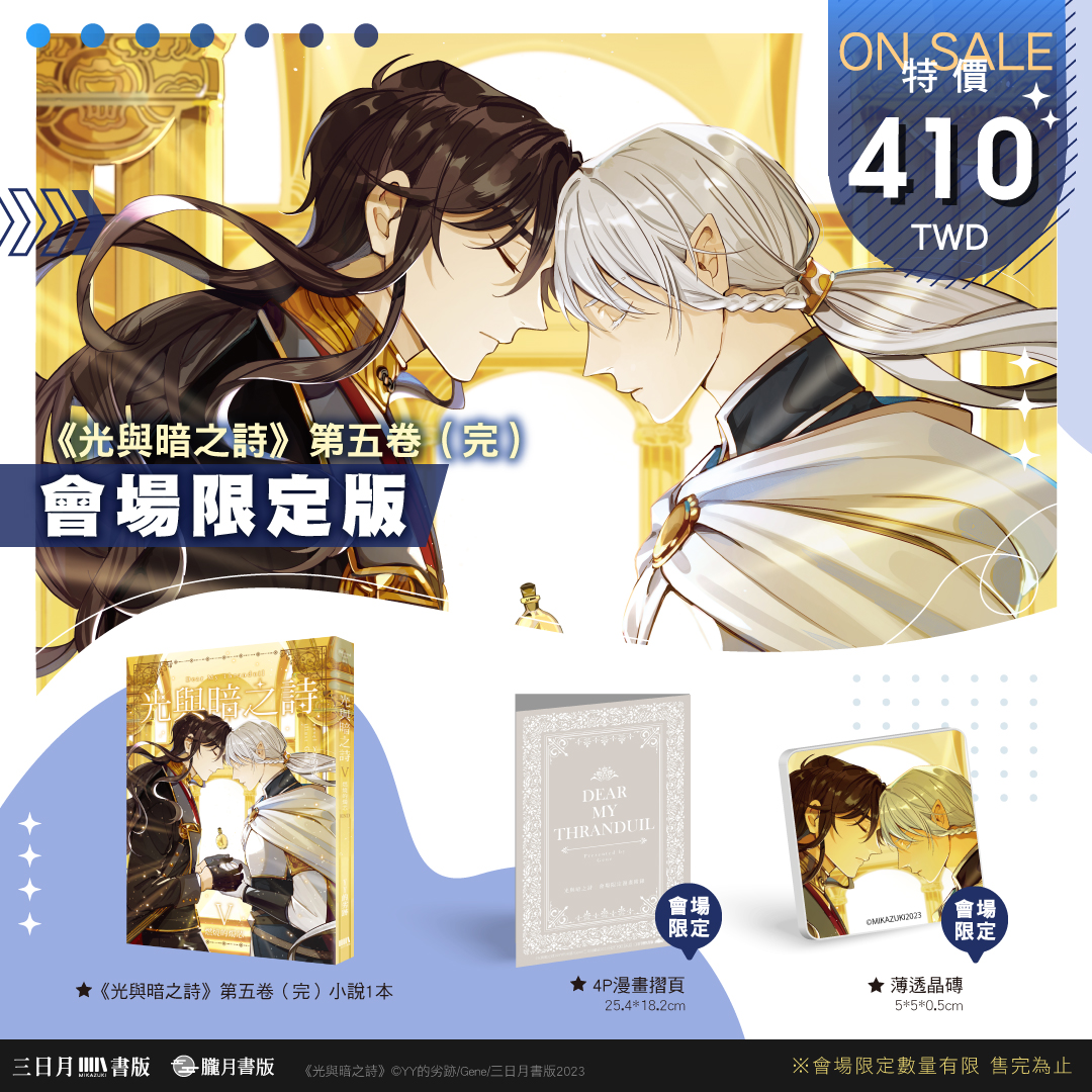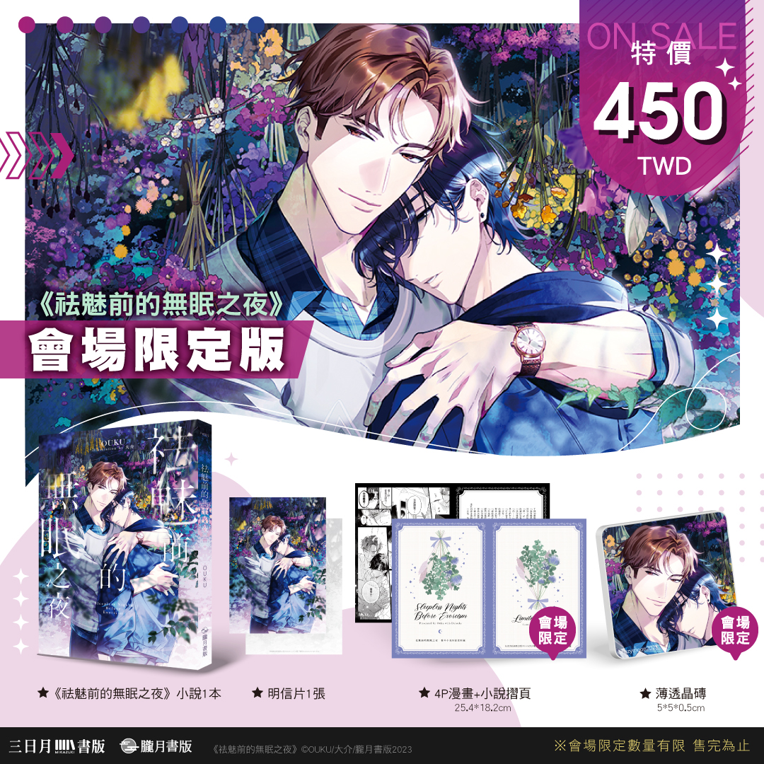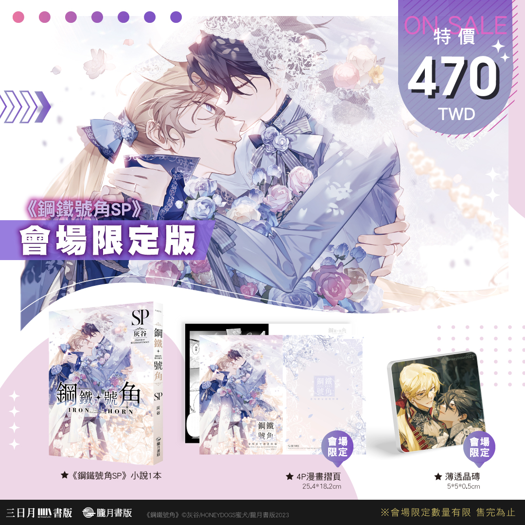 想要買到這些超限量的會場限定版與參加紀念活動,就一定要到2023漫博會現場的三日月書版X朧月書版攤位喔!更多消息煩請密切注意三日月、朧月粉絲團、IG與Plurk。