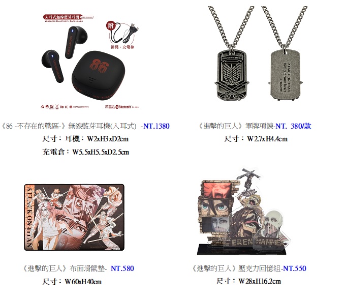 除此之外,《莉可麗絲 Lycoris Recoil》的福袋內容也相當豐富。福袋裡包含了兩位女主角圖案的萬用絨毯、調皮吐舌的千束全彩抱枕,另外還有瀧奈的滑鼠墊以及超大角色紙袋提供了足夠的容量,讓你方便攜帶各種展場戰利品。同時,《86 -不存在的戰區-》、《刀劍神域》和《鬼滅之刃》的福袋內容也不容錯過。《86 -不存在的戰區-》福袋中有雙面造型抱枕、藍芽音箱、電競級滑鼠墊和超大角色紙袋。《刀劍神域》福袋則包含超大角色紙袋、角色摺疊收納椅、人物長門簾和超帥滑鼠墊,讓你仿佛進到動畫的虛擬世界中。最後,《鬼滅之刃》福袋當然也帶來了驚喜。包含戀柱全彩抱枕、霞柱長門簾、超大紙袋還有戀柱和霞柱的全彩拭鏡布,讓你展示出對鬼滅之刃的熱愛。這些精心設計的福袋將在台北漫畫博覽會期間限定發售,數量有限,粉絲們趕緊搶購吧!