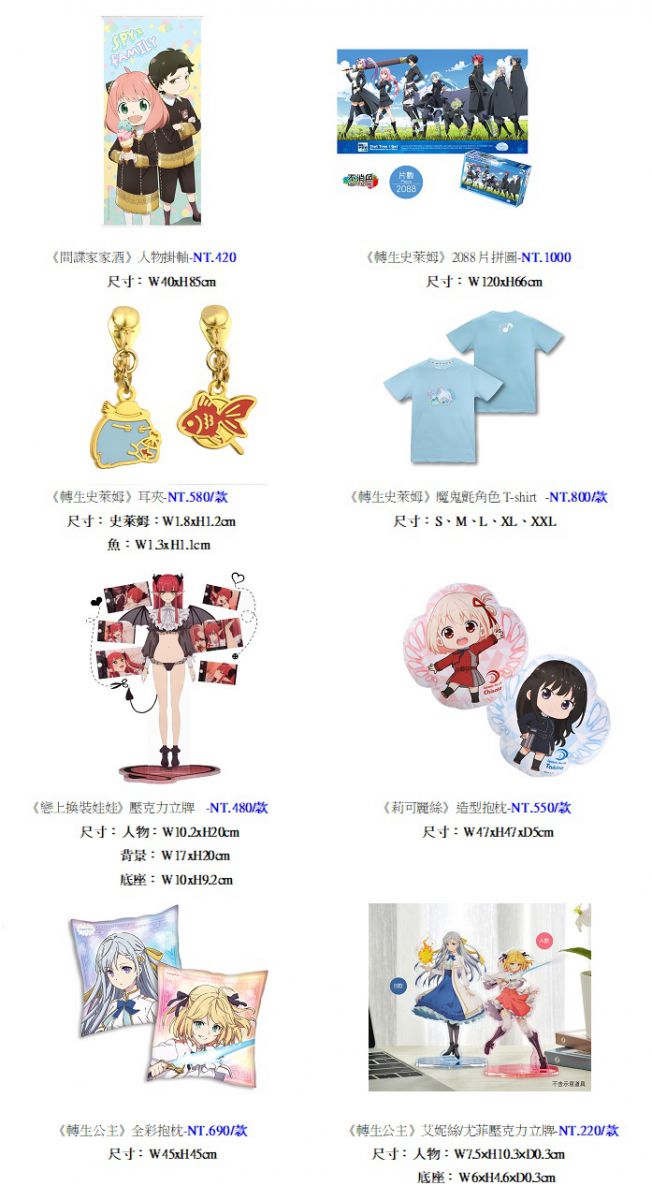 除了帥氣新品以外,這次也推出了超多萌心爆發的新品,有《間諜家家酒》安妮亞和次子達米安的人物掛軸,喜歡他們的粉絲一定要入手。《關於我轉生變成史萊姆這檔事》在本次漫博也有多款新品,可以一次收藏主角們帥圖的2088片拼圖、祭典氛圍的耳夾,還有魔鬼氈角色T-shirt,隨時隨心情變換花樣,買一件抵三件!《戀上換裝娃娃》和《莉可麗絲 Lycoris Recoil》這次也推出了療癒向的壓克力立牌跟造型抱枕,被可愛的女孩子包圍真是太幸福了!因為兩位女主角的「百合互動」引起話題的《轉生公主與天才千金的魔法革命》也推出了兩項新品,全彩抱枕加上壓克力立牌真是太香啦!