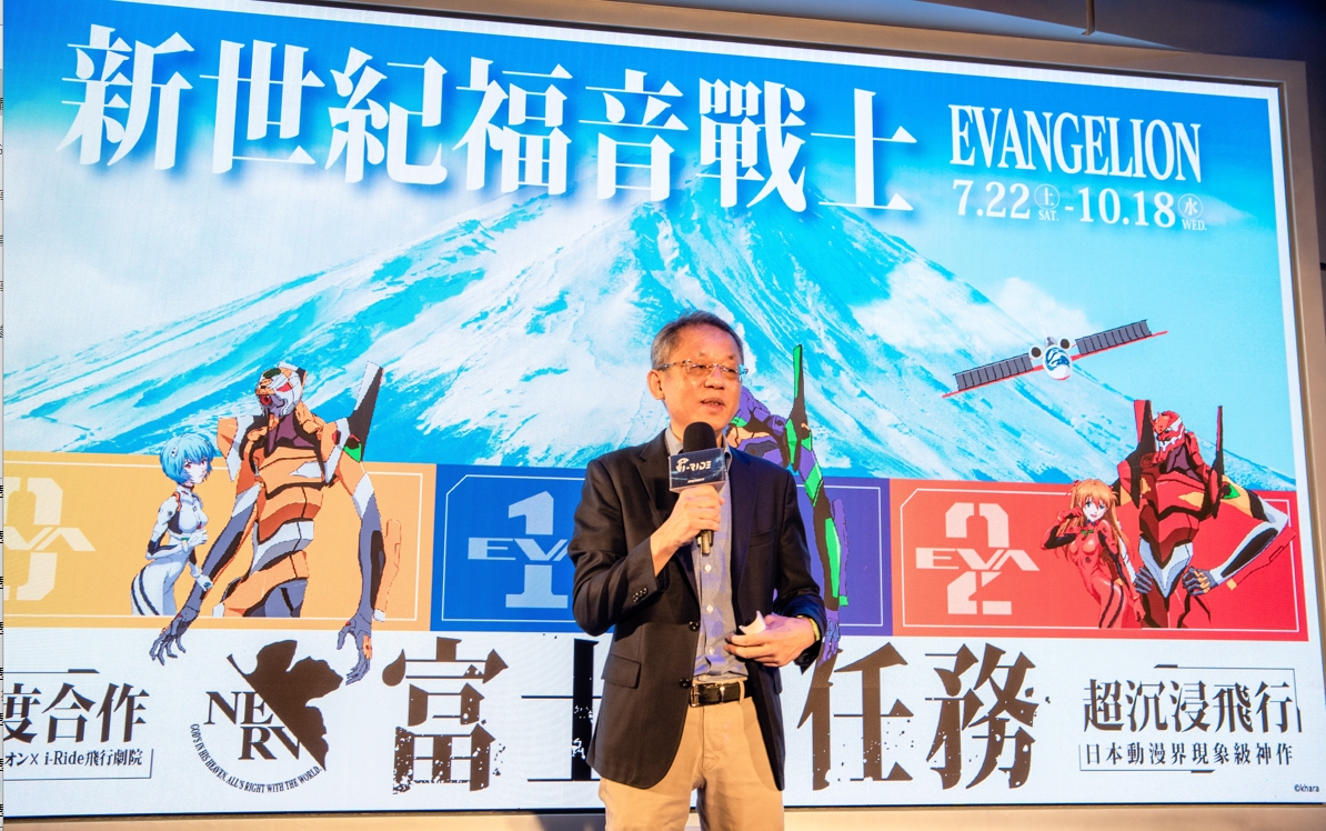7/20(四)智崴集團在微風南山百貨的i-Ride飛行劇院舉辦新作《新世紀福音戰士:富士山任務》上映記者會,現場除了智崴集團董事長歐陽志宏蒞臨現場、執行啟動儀式之外,還邀請到《木曜4超玩》主持群之一的阿部瑪利亞擔任嘉賓,在記者會後擔任一日嚮導,陪伴觀眾搶先首飛!