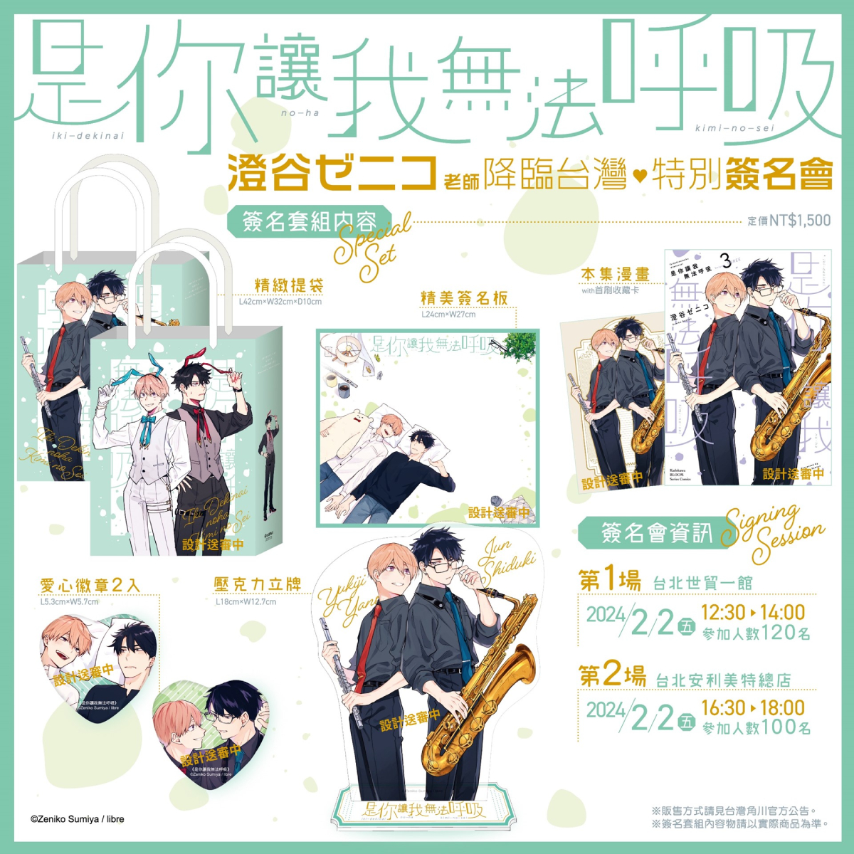 《是你讓我無法呼吸》澄谷ゼニコ老師 降臨台灣♥特別簽名會,簽名套組收錄多款限定特典
