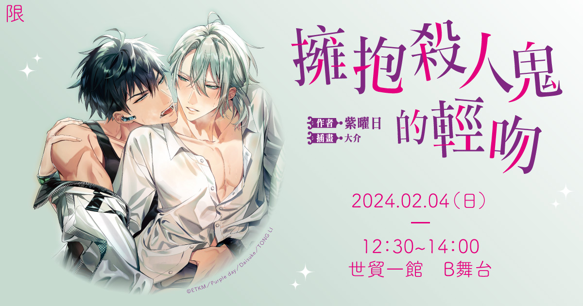- 活動名稱:《擁抱殺人鬼的輕吻》作者紫曜日、繪師大介 簽名會
