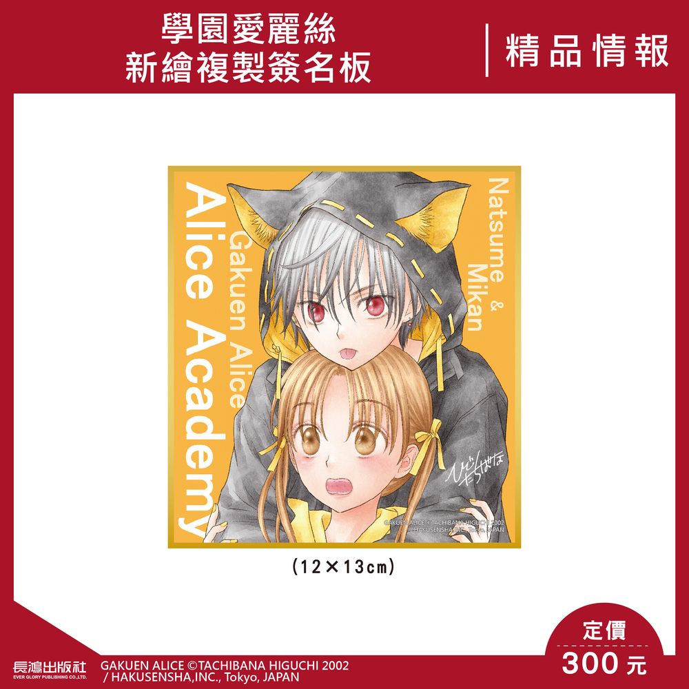 廣受好評的台灣限定「新繪複製簽名收藏板」,本次也推出全新款式,特別邀請日本漫畫家樋口橘老師繪製《學園愛麗絲》全新彩圖,一起再次回到愛麗絲學園中吧!