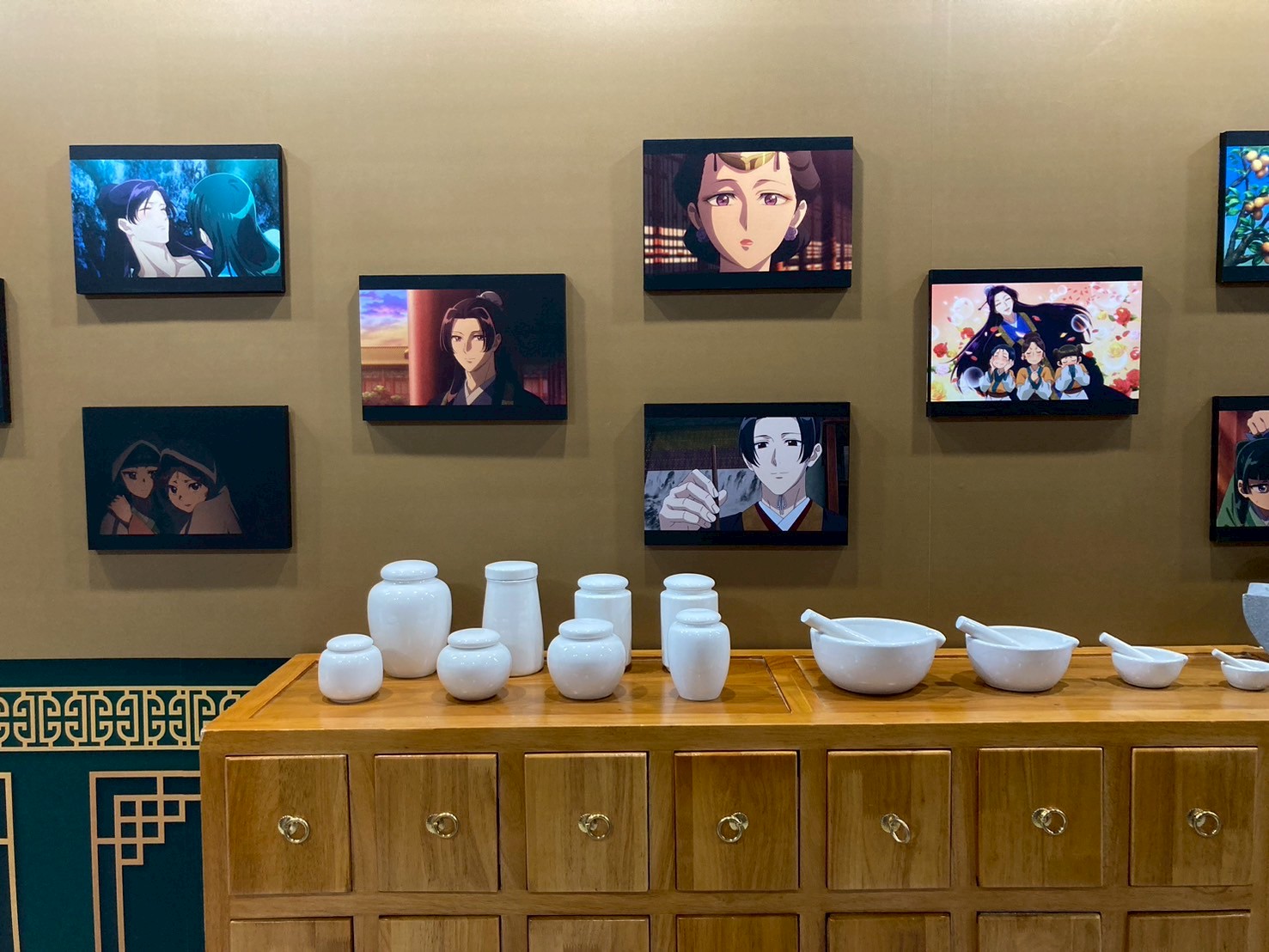展區入口即是第一大亮點!「華麗宮廷大門」超有氣勢,貓貓與壬氏站在入口迎接大家的到來,走進快閃店首先映入眼簾的是動畫大型主視覺,一整排角色如同親自迎接粉絲到來。第二亮點是「主角圍繞的宮廷椅區」特別設置的宮廷座椅讓大家能與貓貓、壬氏、玉葉妃及高順一同合影,體驗華麗的宮廷氛圍。接續的是「經典回憶長廊」場景回顧區更完整重現第一、二季的經典畫面,從第一季中貓貓指認「這個有毒」的名場景,到第二季壬氏於月光下翩然起舞,以及與貓貓一同墜入洞窟的瞬間,彷彿將觀眾再次拉回劇情的精彩時刻。第四大是「角色宮廷風卷軸區」場景牆另一側則展示多位主要角色的精緻卷軸,貓貓、壬氏、高順、小蘭、樓蘭妃、里樹妃與梨花妃一字排開,宛如親身步入宮廷深處。隨後進入「氣勢主視覺」,歷季的經典主視覺也完整呈現,讓粉絲拍照打卡一次蒐集。最後是本展區最大亮點3米高的貓貓氣偶降臨快閃店,,粉絲朋友盡請期待!