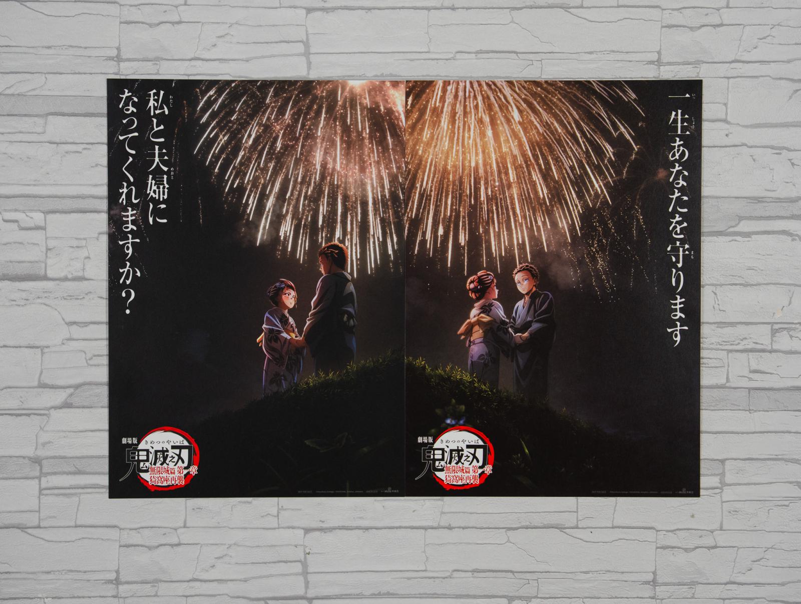 隨著電影熱潮《鬼滅之刃》的話題在社群間依舊沸騰不減,其中,「狛治與戀雪」的細膩情感更深深打動人心,成為引發共鳴、話題持續延燒的橋段之一,而日前電影代理商木棉花公開了狛治和戀雪同框的第四彈視覺圖,隨即掀起粉絲熱烈迴響與期待聲浪。作為對影迷支持與感動的回饋,特別以此視覺圖推出第十三週入場特典海報,凡於 10 月 31 日至 11 月 6 日期間憑電影票兩張,即可兌換 A3 海報乙組(內含兩款各一張),以煙火下的經典畫面,定格狛治與戀雪的感人愛情。