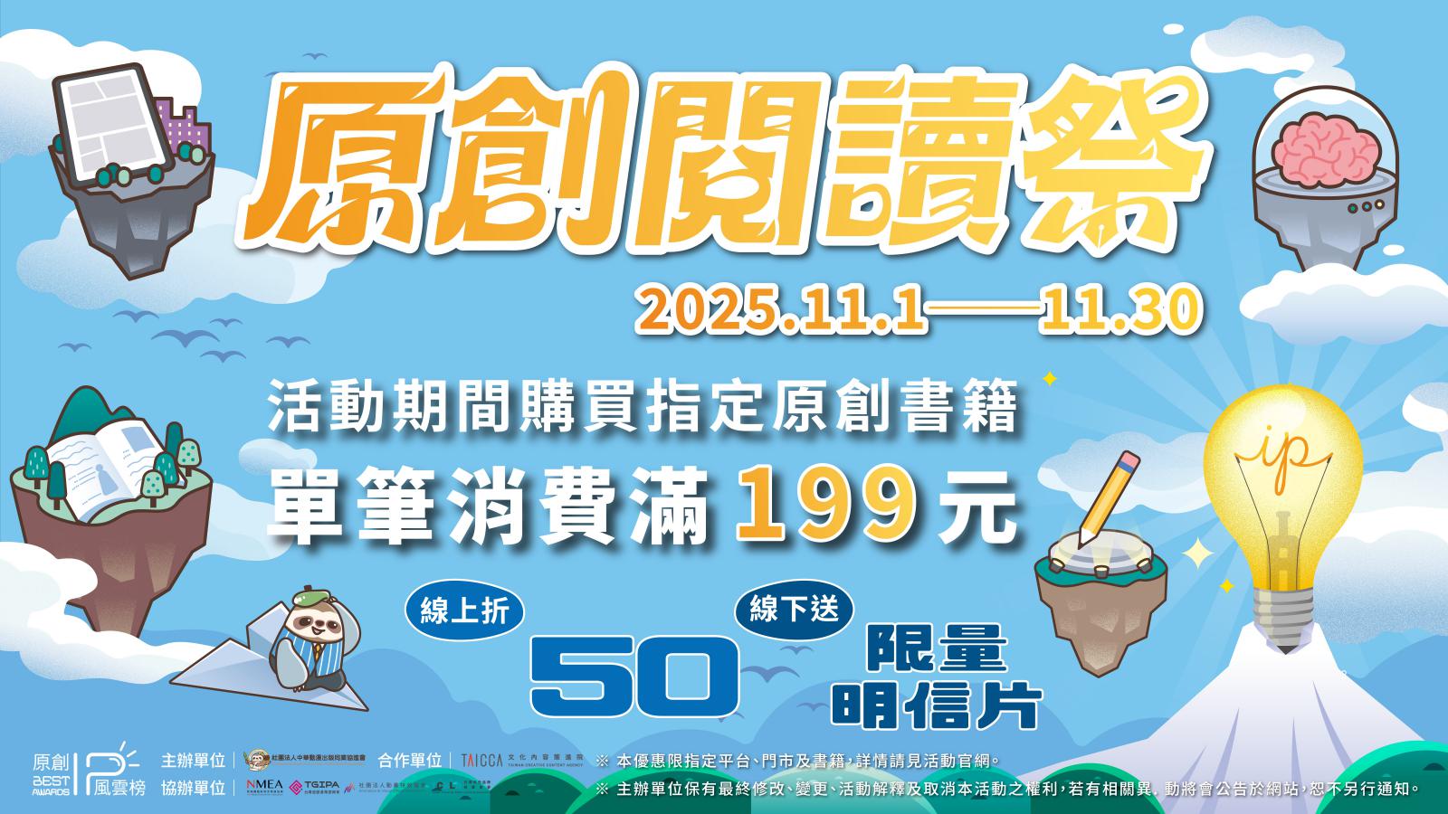 11月購書好康登場!「原創閱讀祭」開跑 單筆滿199元線上折50元、線下贈限量明信片