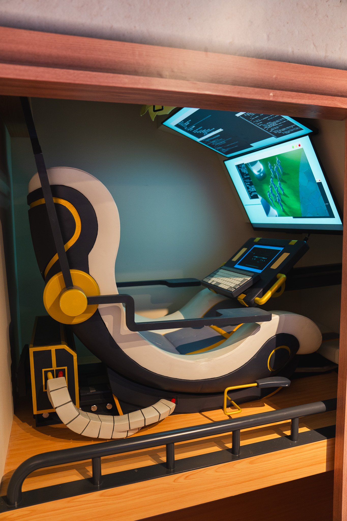 本次展覽以作品核心場景「LycoReco 咖啡廳」作為開頭,依動畫原畫比例重現櫃檯、窗格與室內氛圍,從牆面配色到擺設都忠於原作。粉絲踏入即能感受到千束、瀧奈的日常與任務之中,而最強駭客Walnut的壁櫥工作站,也以立體造景呈現,忠實還原動畫中場景。