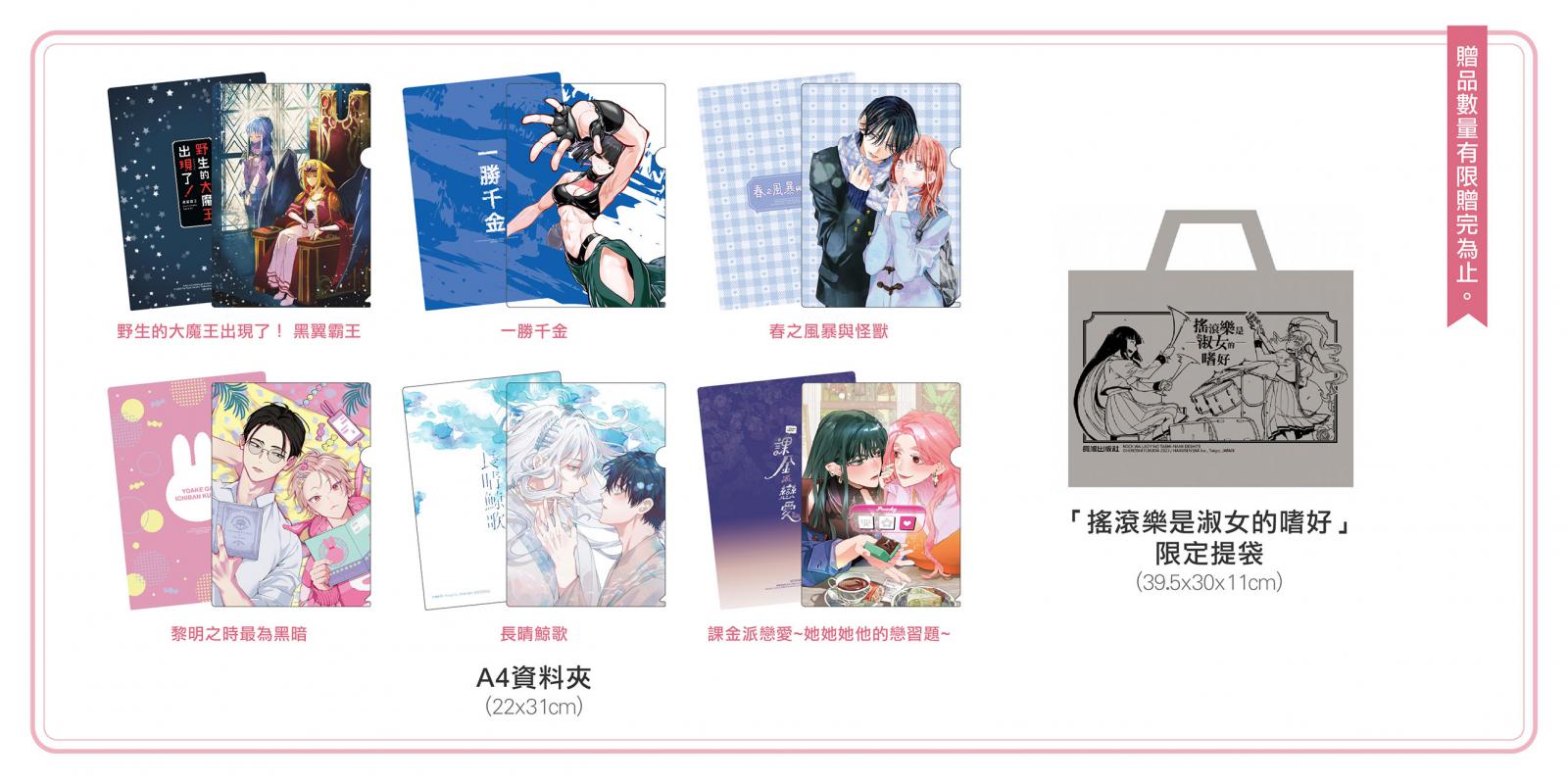 消費滿499元,即送「2026年2月動漫節限定A4資料夾」乙個,共6款隨機贈送,消費滿2,994元可獲得全套款式。資料夾單筆消費可以累積贈送,想蒐集大全套的粉絲們歡迎前往現場或官網挑選好書!