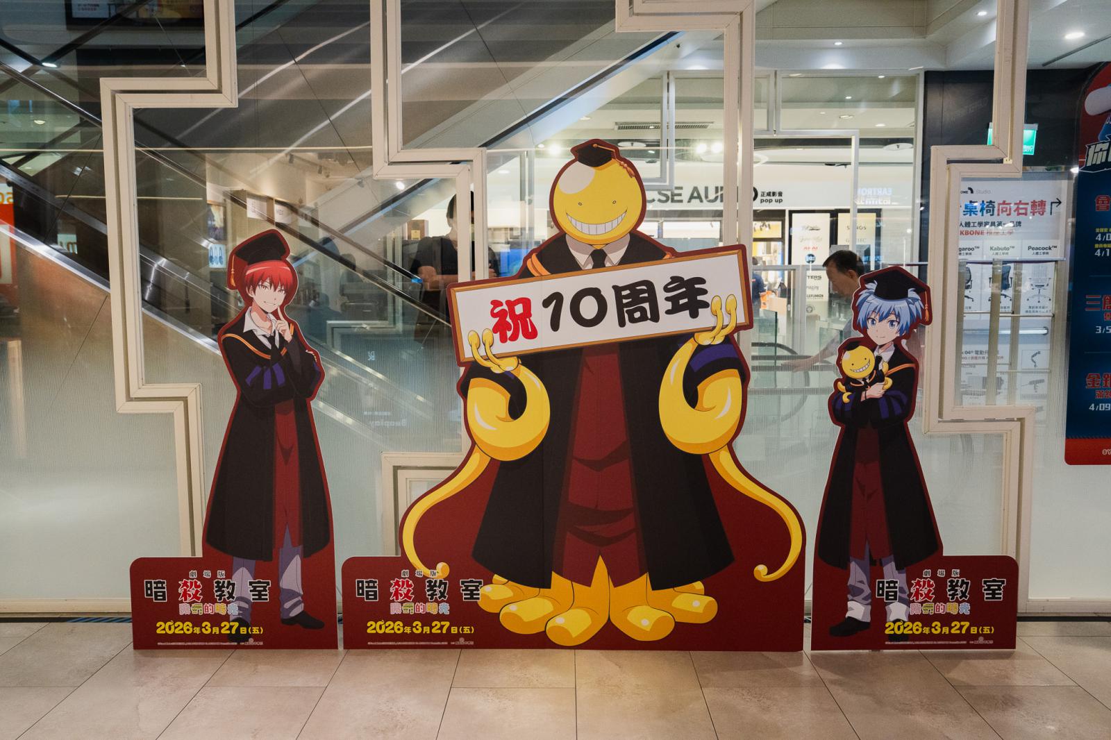 隨著電影上映,期間限定快閃店也同步登場。威秀影城除推出獨家電影套餐及電影海報組外,於3月27日至4月29日期間,在台北京站威秀影城、台中大魯閣新時代威秀影城及高雄大遠百威秀影城舉辦《暗殺教室》劇場版快閃店。現場除販售多款周邊商品外,也打造集結殺老師與全班同學的「10週年大合照」大型打卡牆,邀請粉絲與角色合影留念。