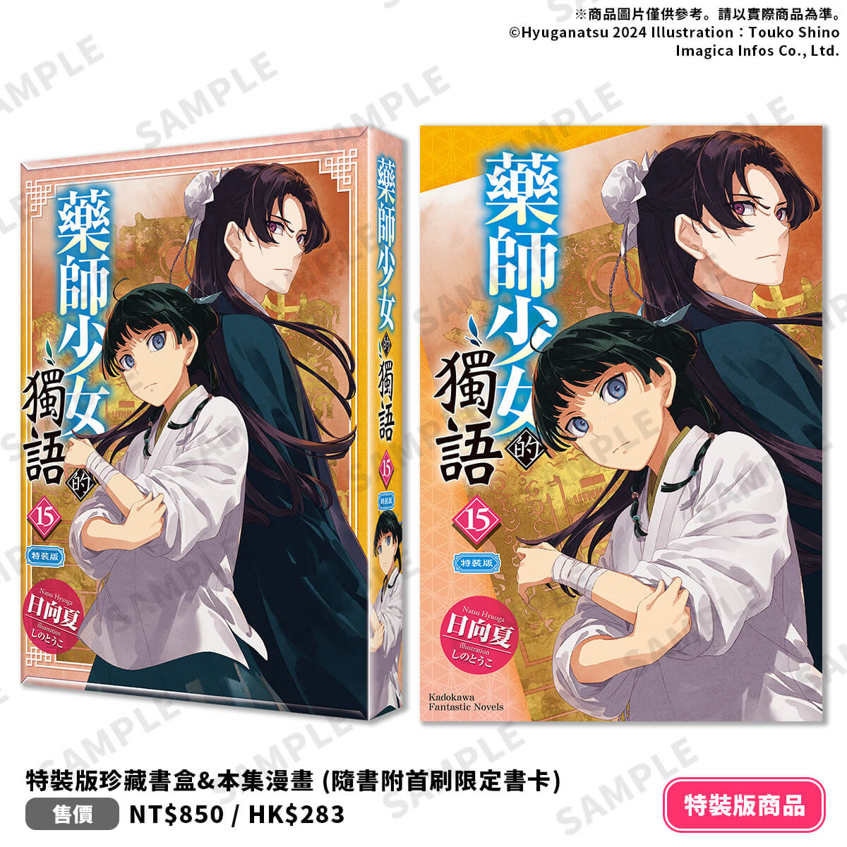 【2025年5月20日新聞稿】以懸疑與藥理交織出古風奇幻的命運漣漪──日向夏筆下的《藥師少女的獨語》,搭配しのとうこ細膩插畫,憑藉深刻筆觸與縝密人物關係,在第二季動畫放送下社群話題持續延燒。台灣角川將於今年2025漫畫博覽會上推出《藥師少女的獨語 (15)》並同步發售收錄小說與多款限定特典周邊的【特裝版】,即日起至5月29日(四)止開放限期預購。凡於台灣角川官網(https://kadokawa.io/bva6n)完成預購,再加碼贈送官網購物金100元。
