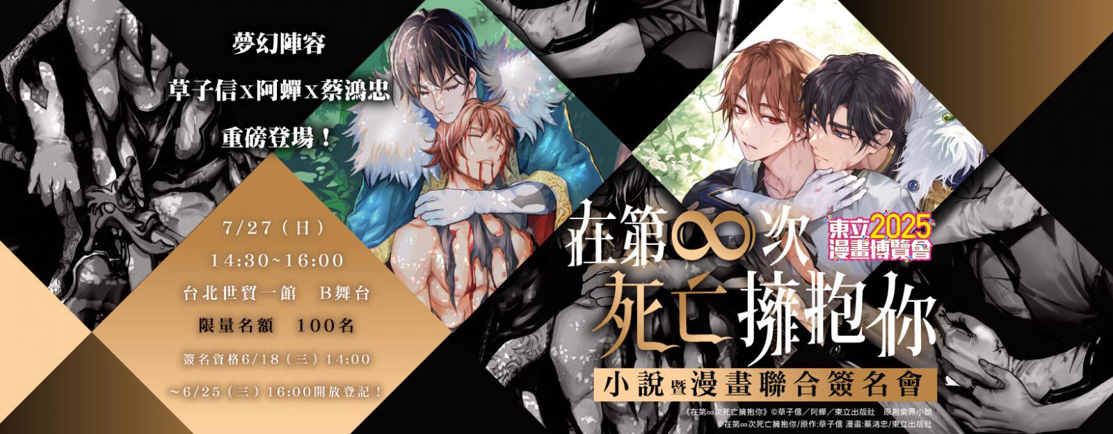 東立出版社-2025年漫畫博覽會‧國人原創活動訊息公佈 《觸摸的練習契約》MAE老師完結紀念簽名會 《在第∞次死亡擁抱你》草子信老師、阿蟬老師、蔡鴻忠老師 小說暨漫畫簽名會 明星原創陣容登場!