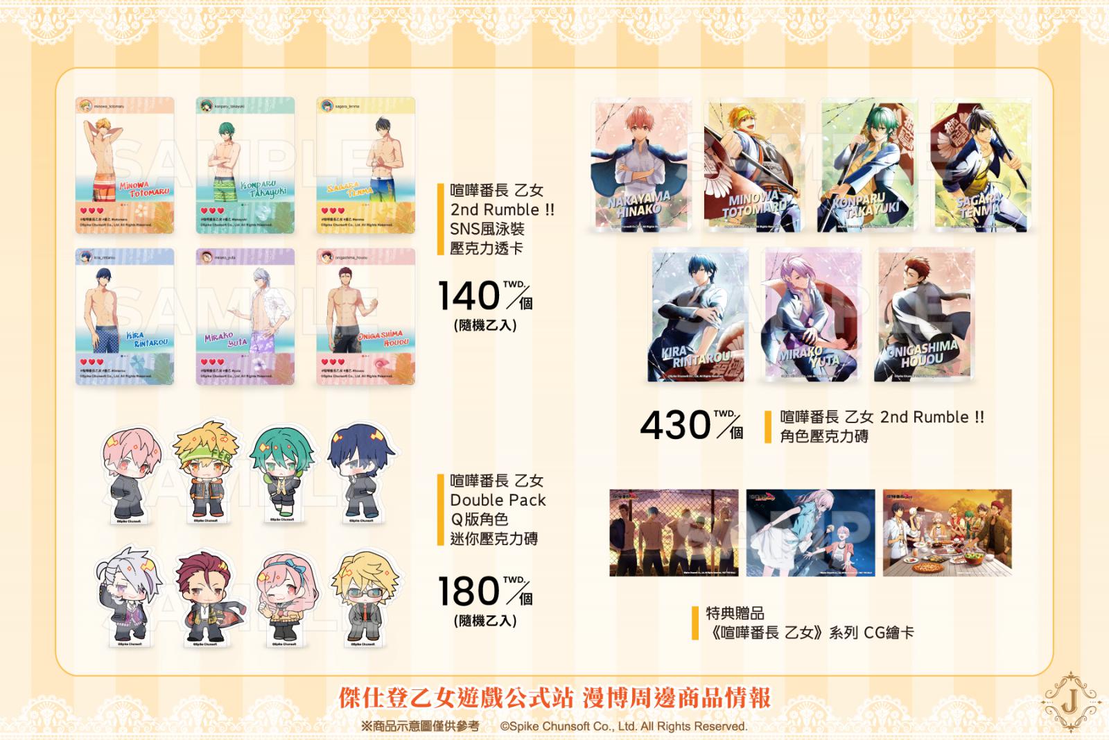 發行、代理商傑仕登宣布將在7/24~7/28於台北世貿一館舉辦的「第24屆漫畫博覽會」中展出! 今年適逢傑仕登創立20週年,為慶祝這個喜悅的日子,傑仕登乙女誠摯企劃,在漫畫博覽會上首次推出原創周邊商品。內容涵蓋OTOMATE開發製作之乙女遊戲《Collar×Malice -Unlimited-》、《天獄亂鬪 -strayside-》,以及Spike Chunsoft Co., Ltd.的經典遊戲《喧嘩番長 乙女》系列等人氣作品,與粉絲們約定一個浪漫的夏天!