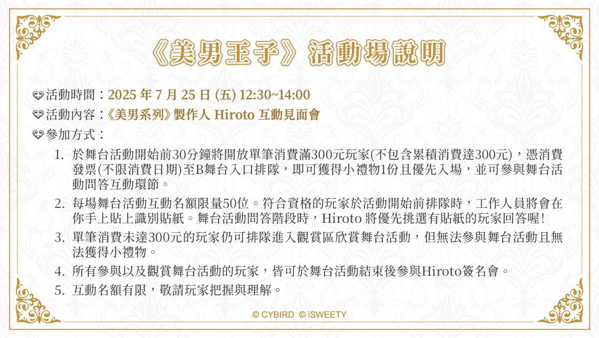 - 《美男王子》場:2025年7月25日(五) AM12:30~14:00