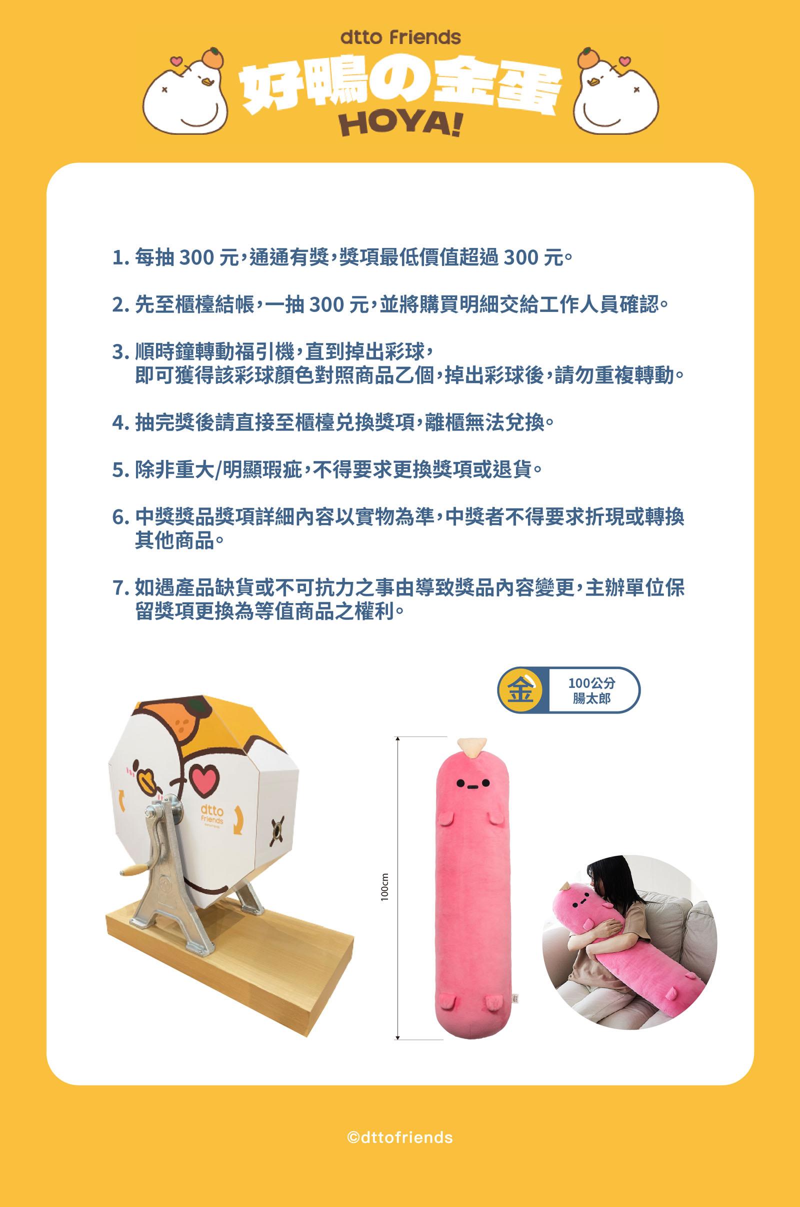 - 每抽 300 元,通通有獎,獎項最低價值超過 300 元。