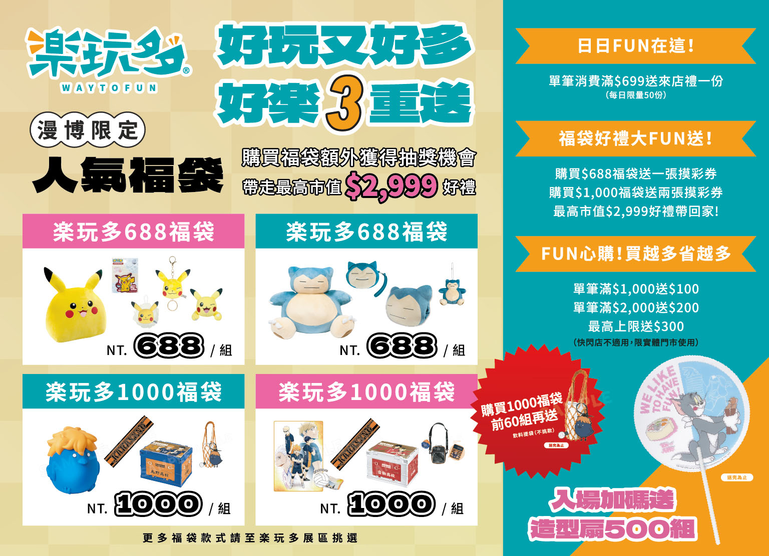 活動日期: 2025/6/25(三)~2025/07/13(日),詳情請見楽玩多官方FB粉絲專頁。