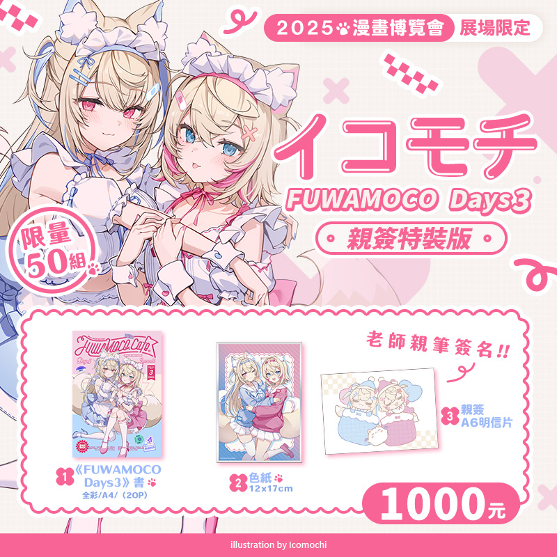 FUWAMOCO媽媽イコモチ老師同人插畫本《FUWAMOCO Days3》親簽特裝版!內含親簽明信片1張!イコモチ 老師 ( X:@rswxx )