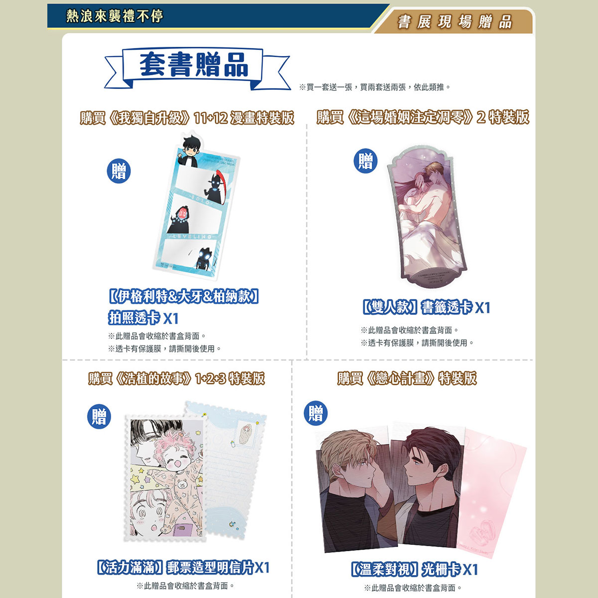 - 購買《這場婚姻注定凋零》2 特裝版,贈【雙人款】書籤透卡一張。