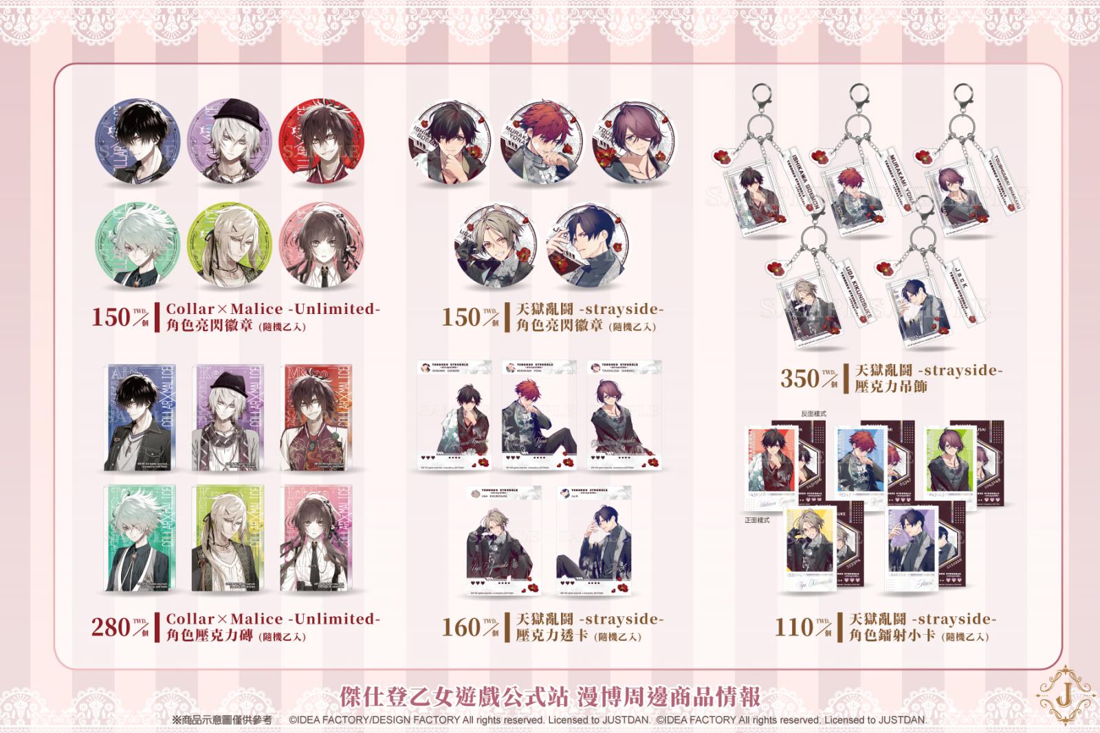 「第24屆漫畫博覽會」即將於7/24~7/28在台北世貿一館舉辦,同時也為了慶祝傑仕登創立20週年的大日子,傑仕登乙女誠摯企劃,在今年的漫畫博覽會上首次推出一系列原創周邊商品――包含人氣乙女遊戲《Collar×Malice -Unlimited-》、《天獄亂鬪 -strayside-》,以及經典作品《喧嘩番長 乙女》系列等。