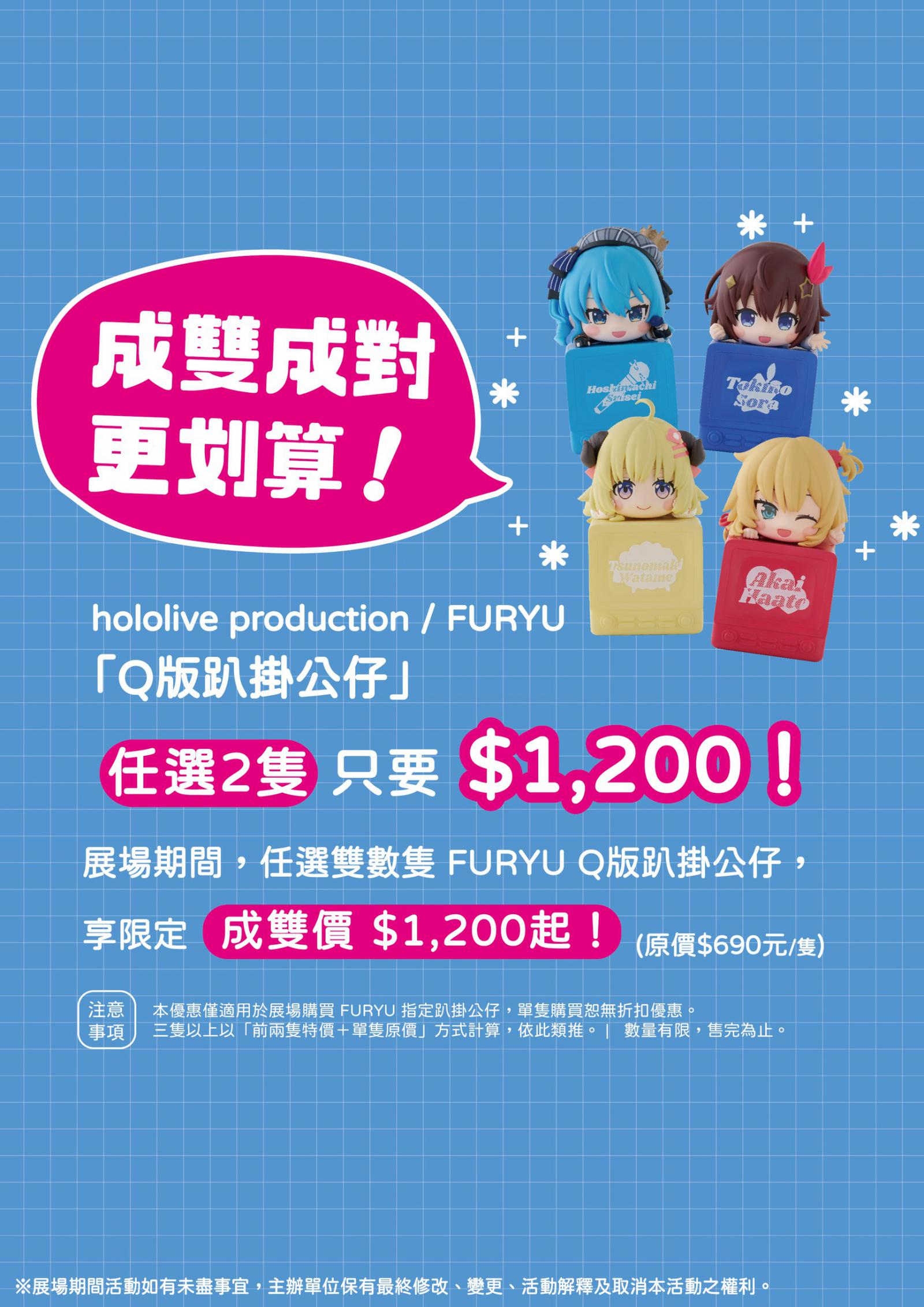 購買任兩款指定 Q版角色掛公仔享成雙價,數量有限,售完為止。