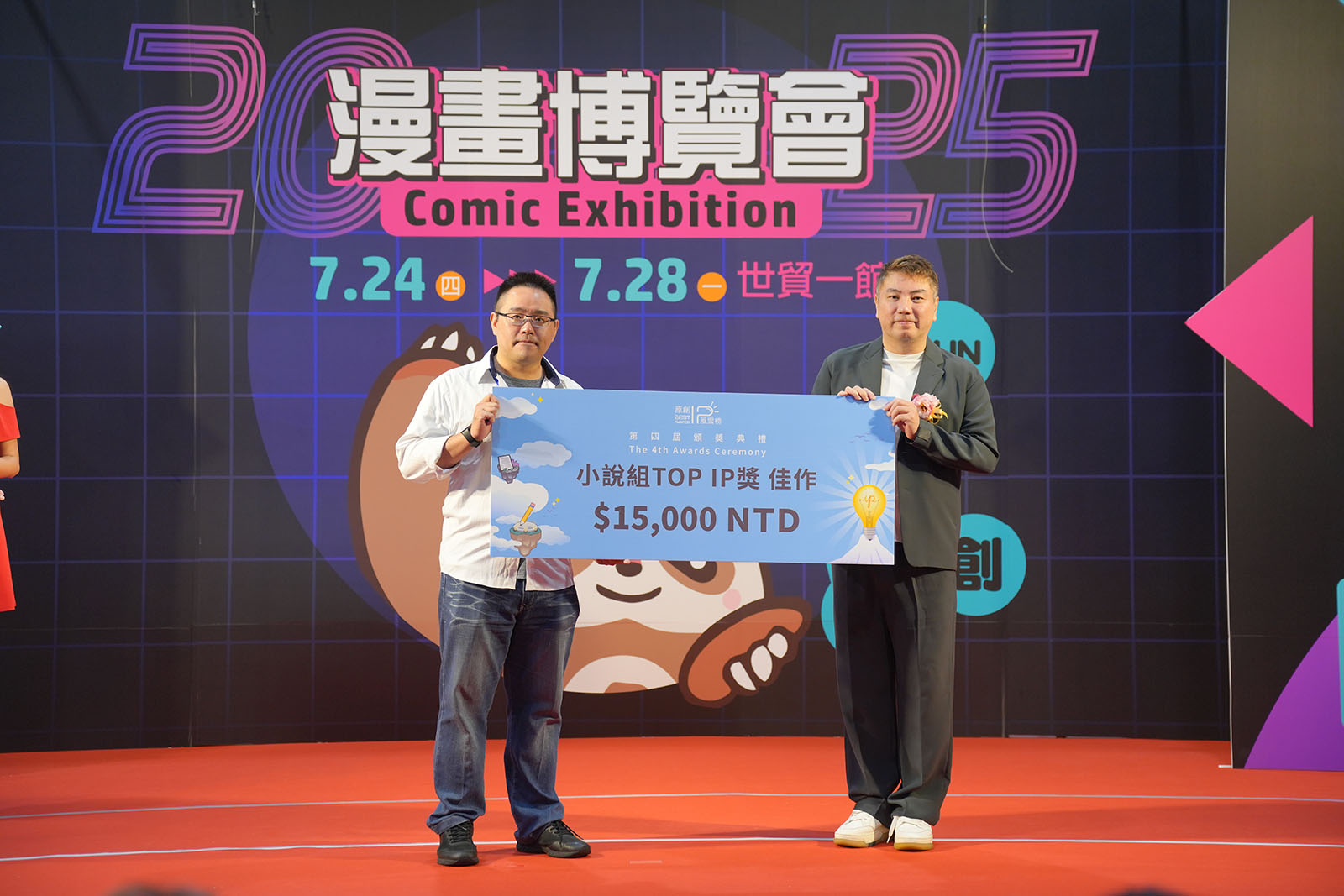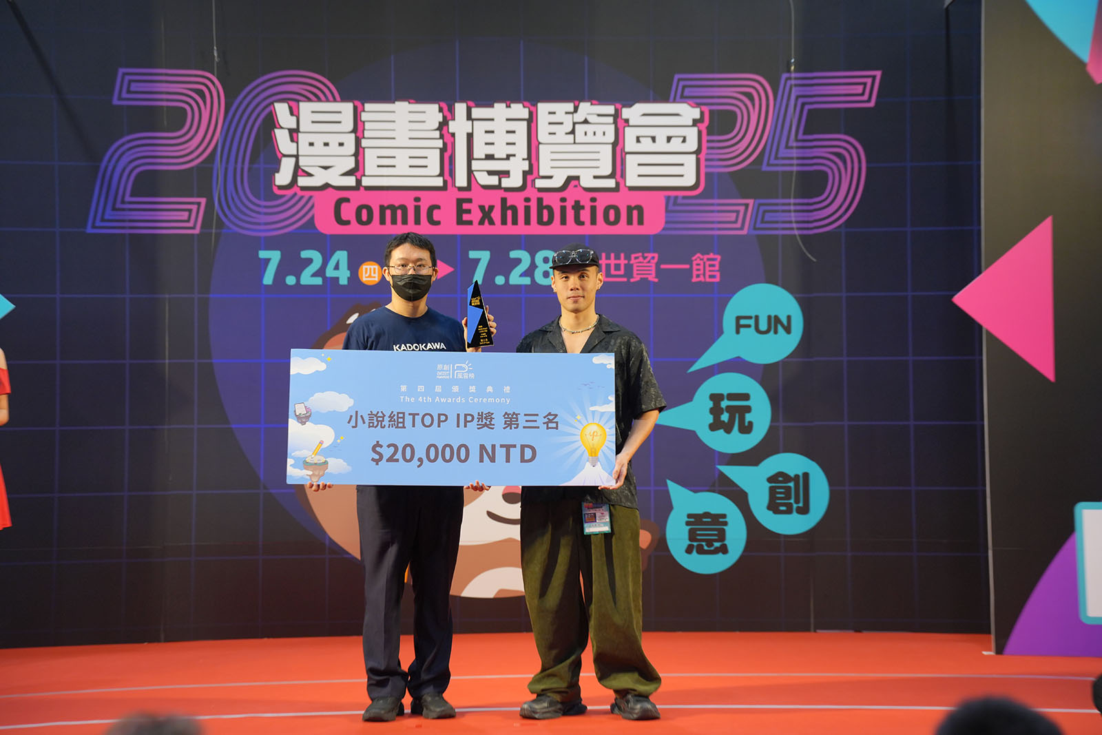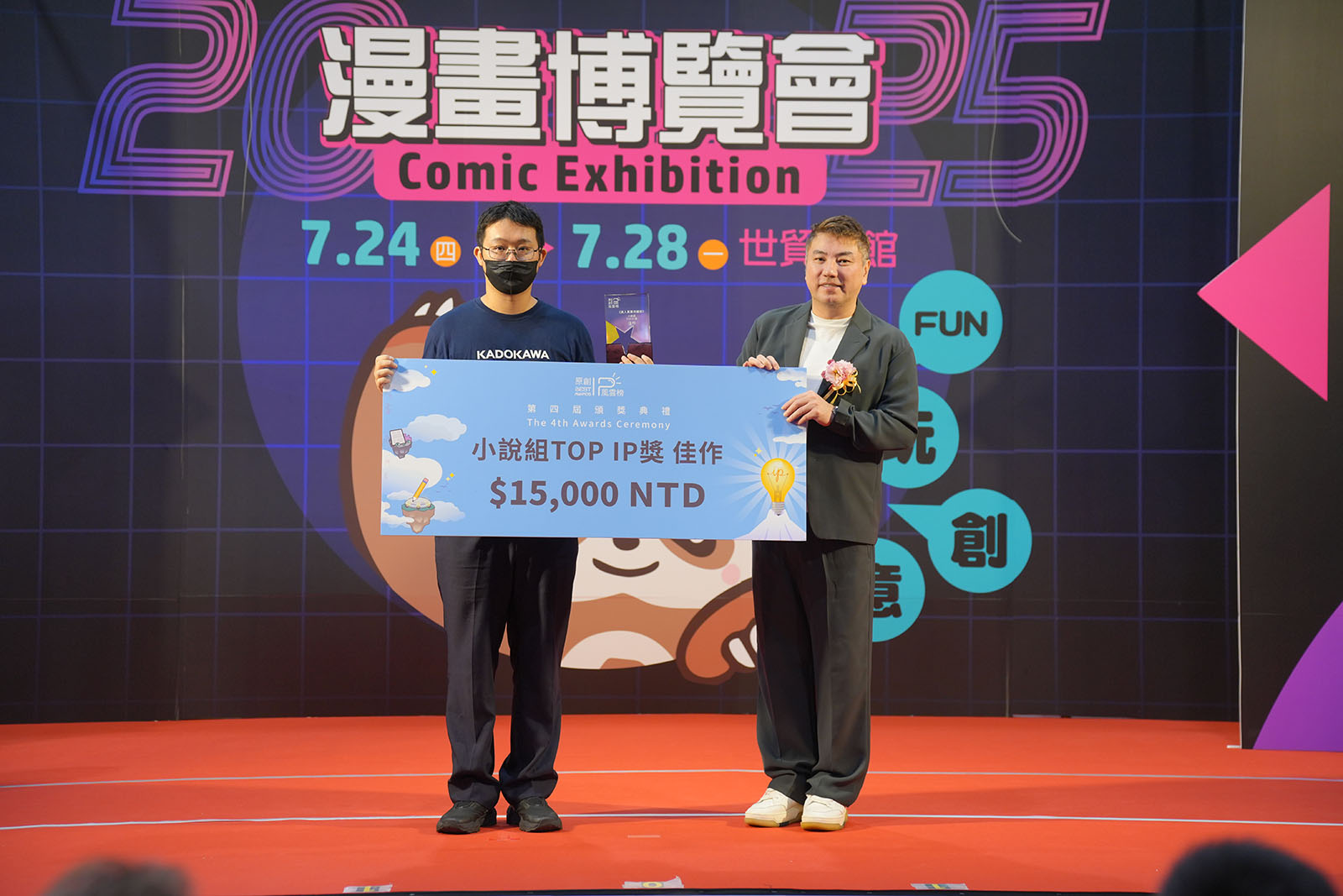 ▲ 頒發小說組TOP IP獎佳作(台灣角川股份有限公司 喬齊安編輯/踢帕娛樂股份有限公司 詹仁雄董事長)