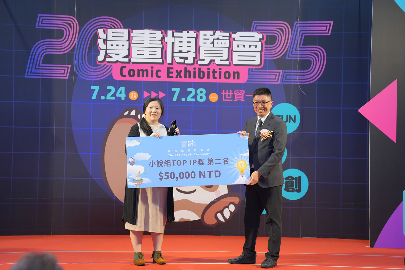 ▲ 頒發小說組TOP IP獎第一名(城邦文化事業股份有限公司奇幻基地出版 張世國編輯/社團法人中華動漫出版同業協進會 蘇偉銓理事長)