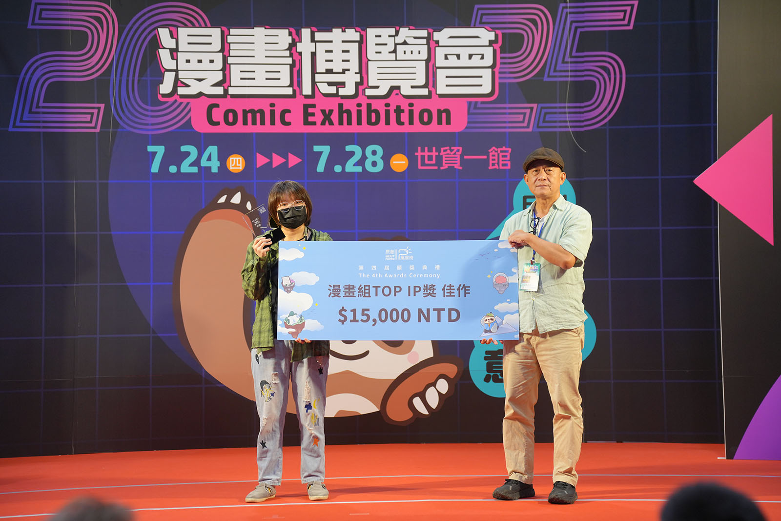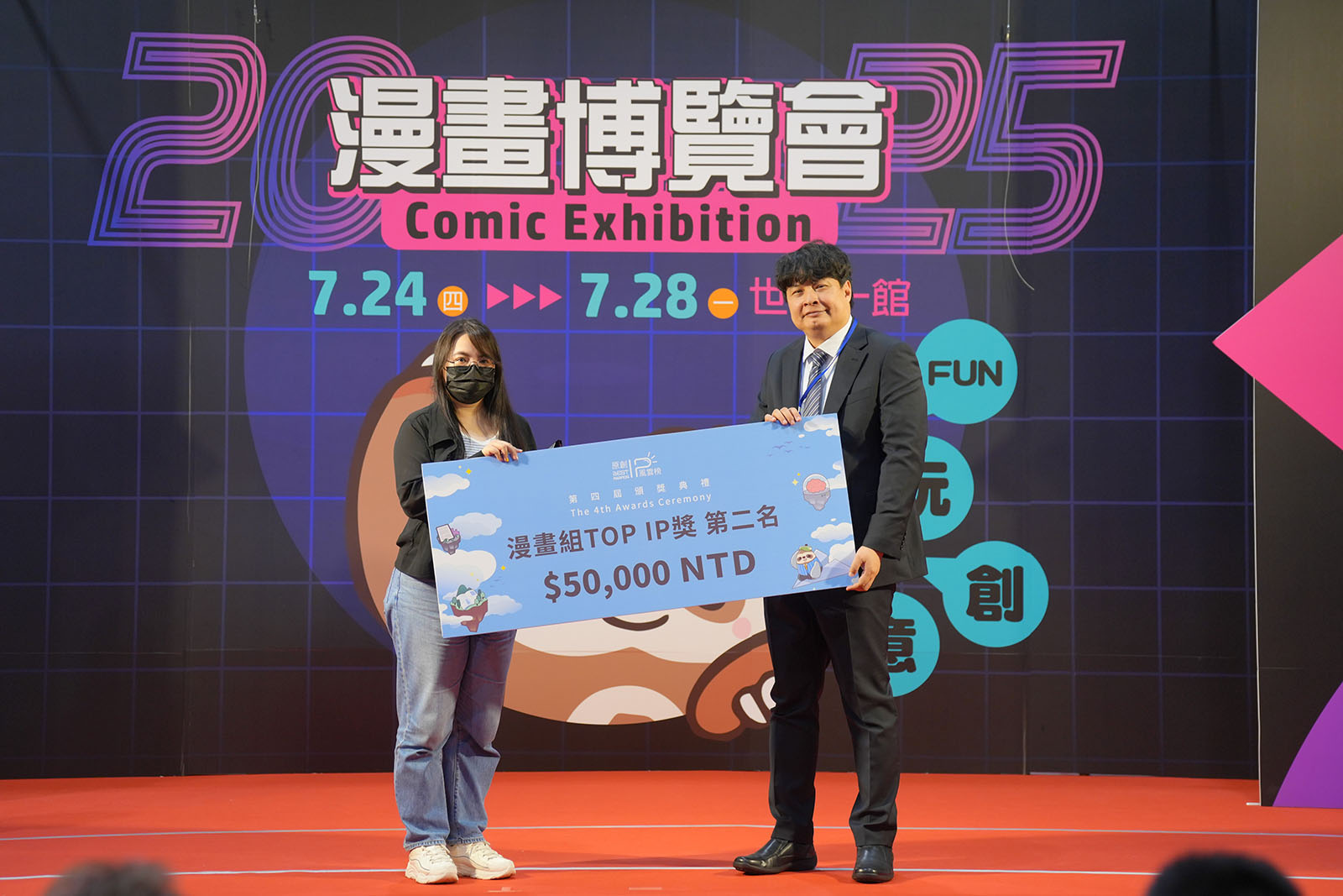 ▲ 頒發漫畫組TOP IP獎佳作(台灣角川股份有限公司 陳育婷編輯/參柒貳拾壹工作室 黃健和負責人)