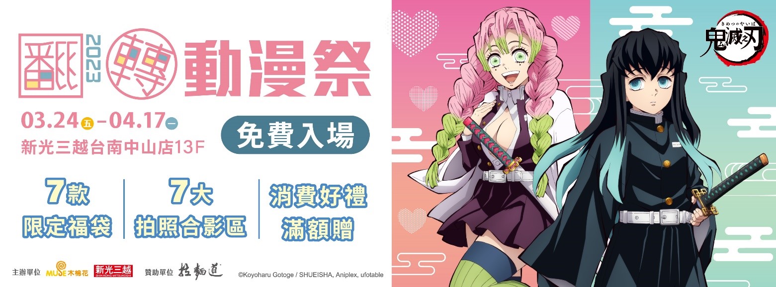 木棉花台南翻轉動漫祭來了!清明連假好去處《鬼滅之刃》合影區新登場 !集結7大動漫場景區照片拍不停 7款主題福袋好想全部帶回家《Lycoris Recoil 莉可麗絲》《進擊的巨人》《-86不存在的戰區-》登場