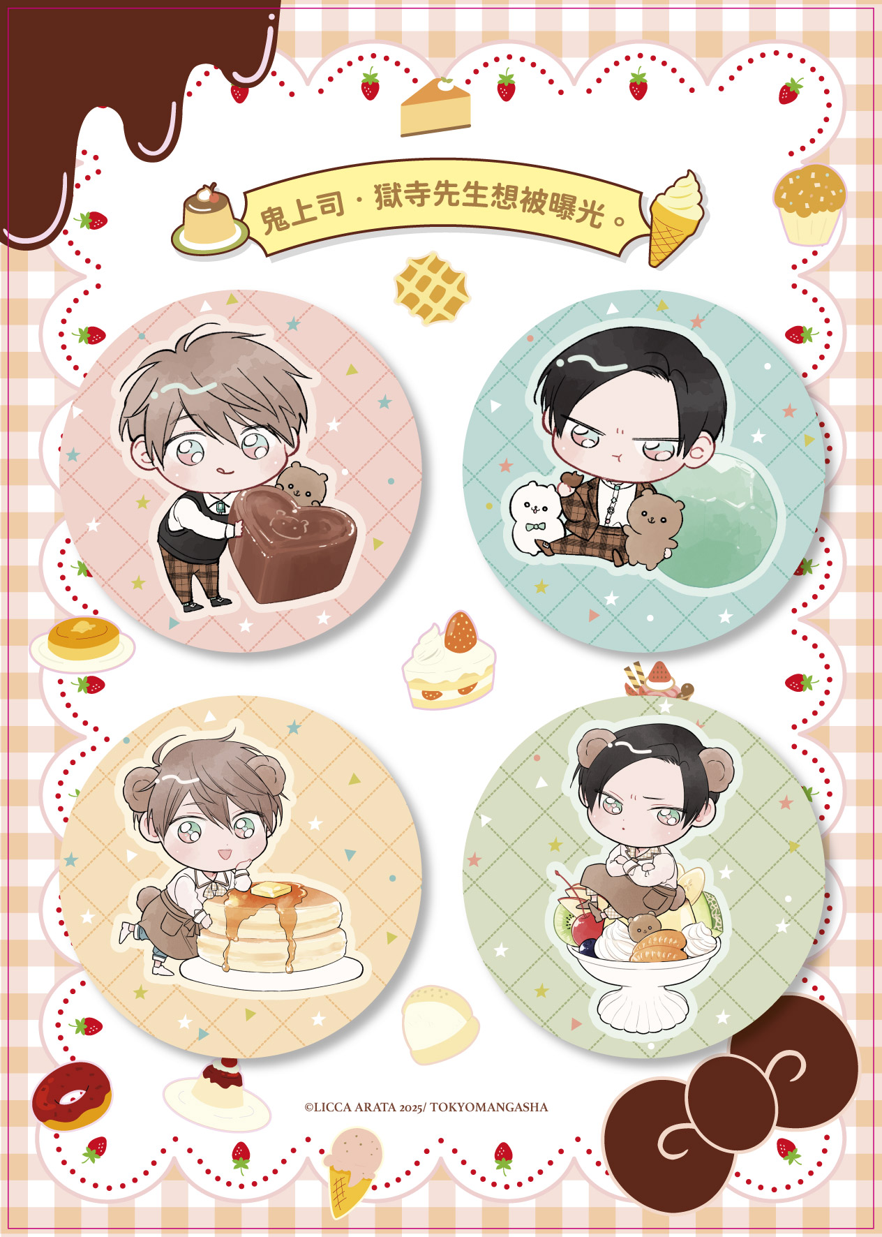 §《鬼上司・獄寺先生想被曝光。》精美胸章組(4入) 乙款(胸章尺寸:44×44mm)