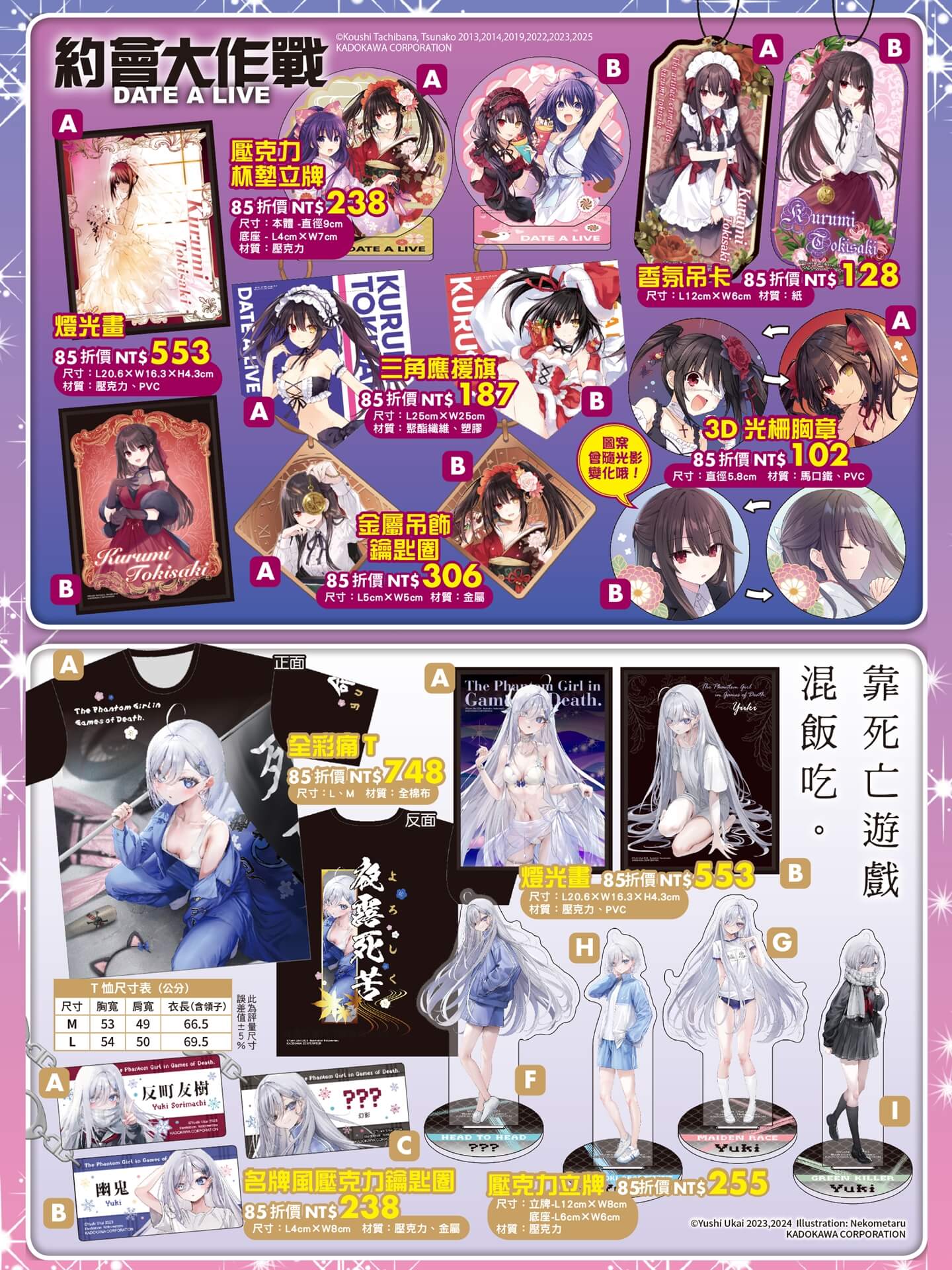 台灣角川2026台北國際動漫節【首賣精品】《DATE A LIVE 約會大作戰》、《靠死亡遊戲混飯吃。(原作)》系列,總共23款