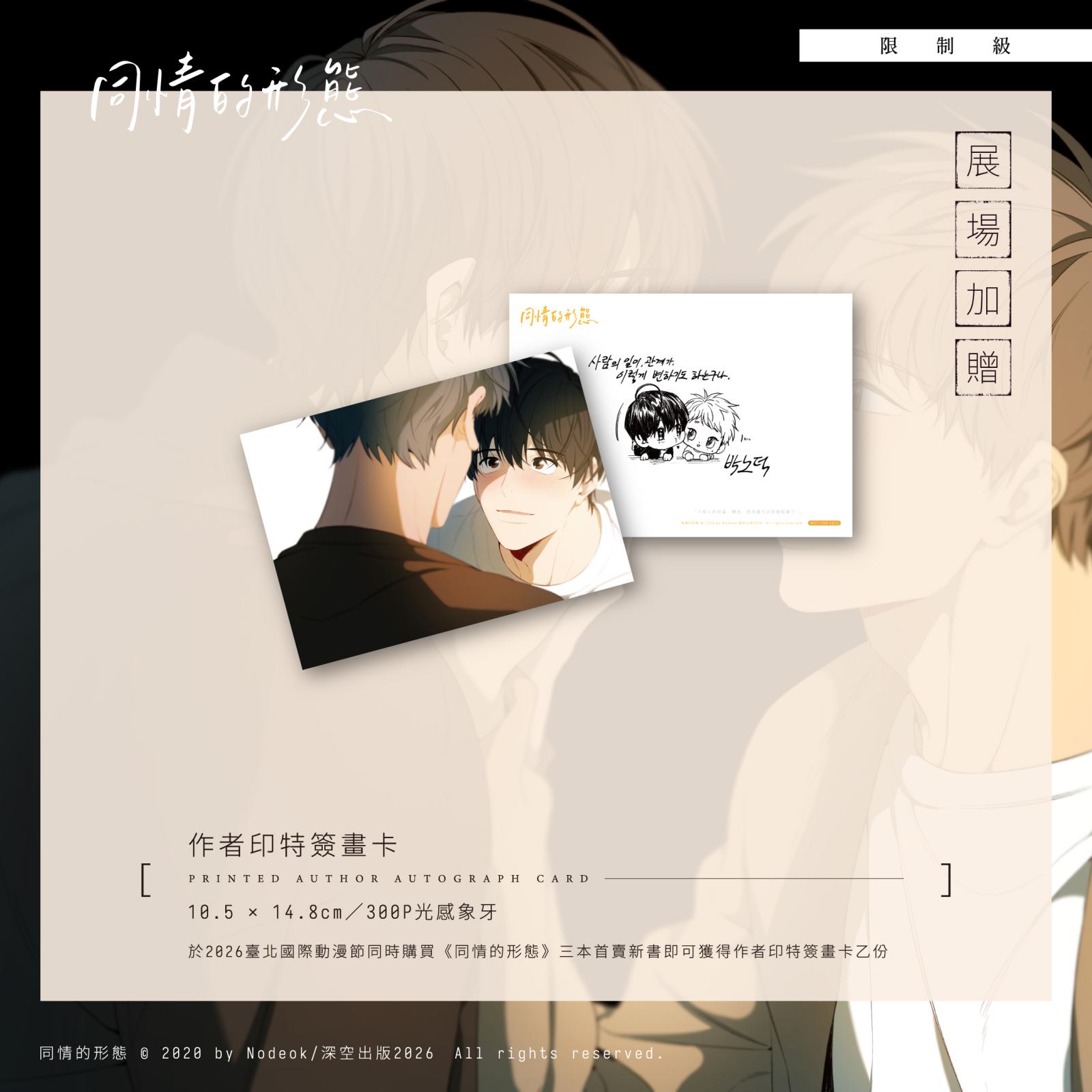 於展場同時購買《同情的形態》三本首賣新書,即可獲得作者印特簽畫卡乙份。