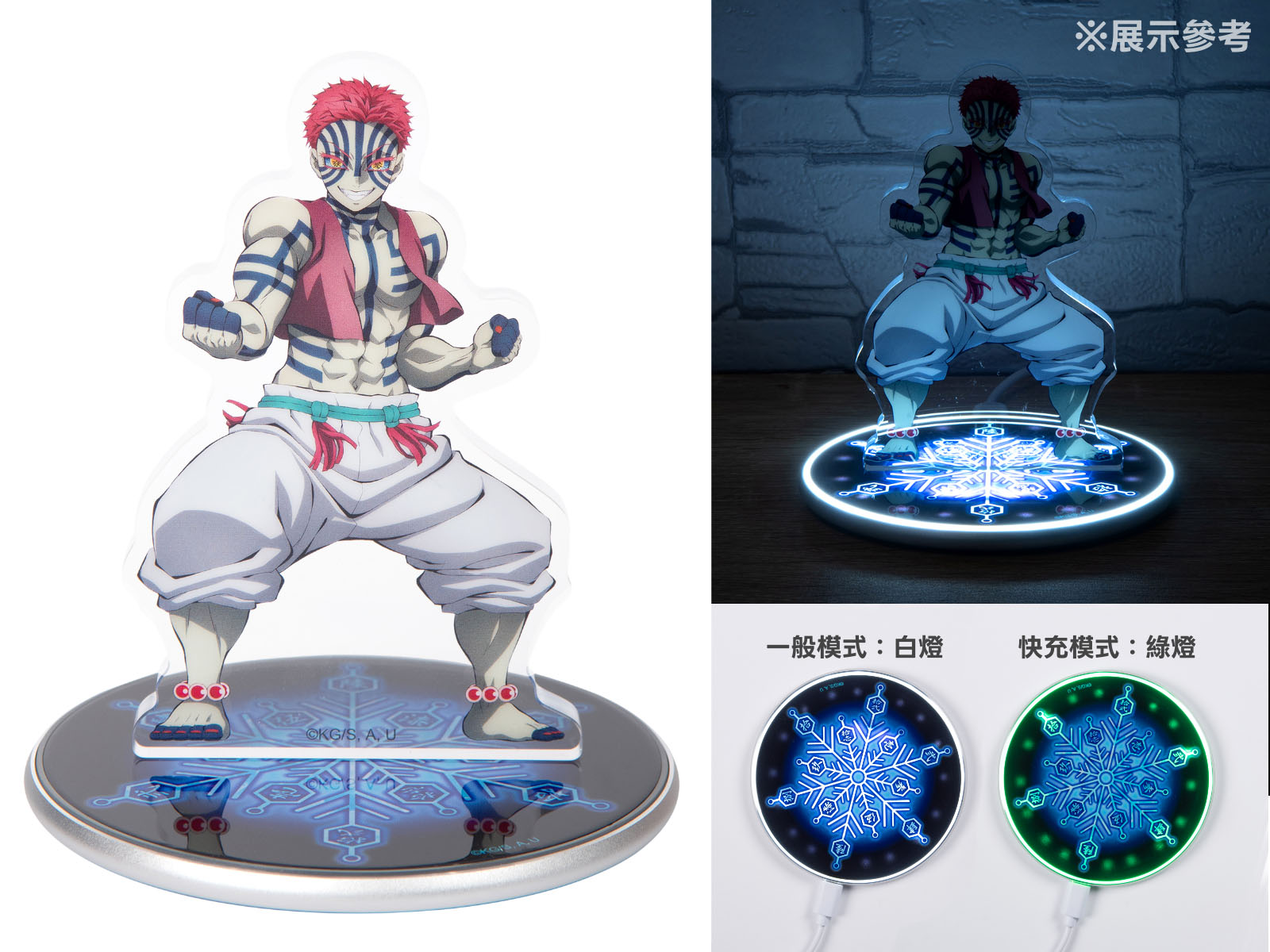 《鬼滅之刃》無線手機充電器(附立牌) NT$1,280 尺寸:充電盤-直徑9.8×厚0.6cm/壓克力-W6.7×H10.9×D0.8cm