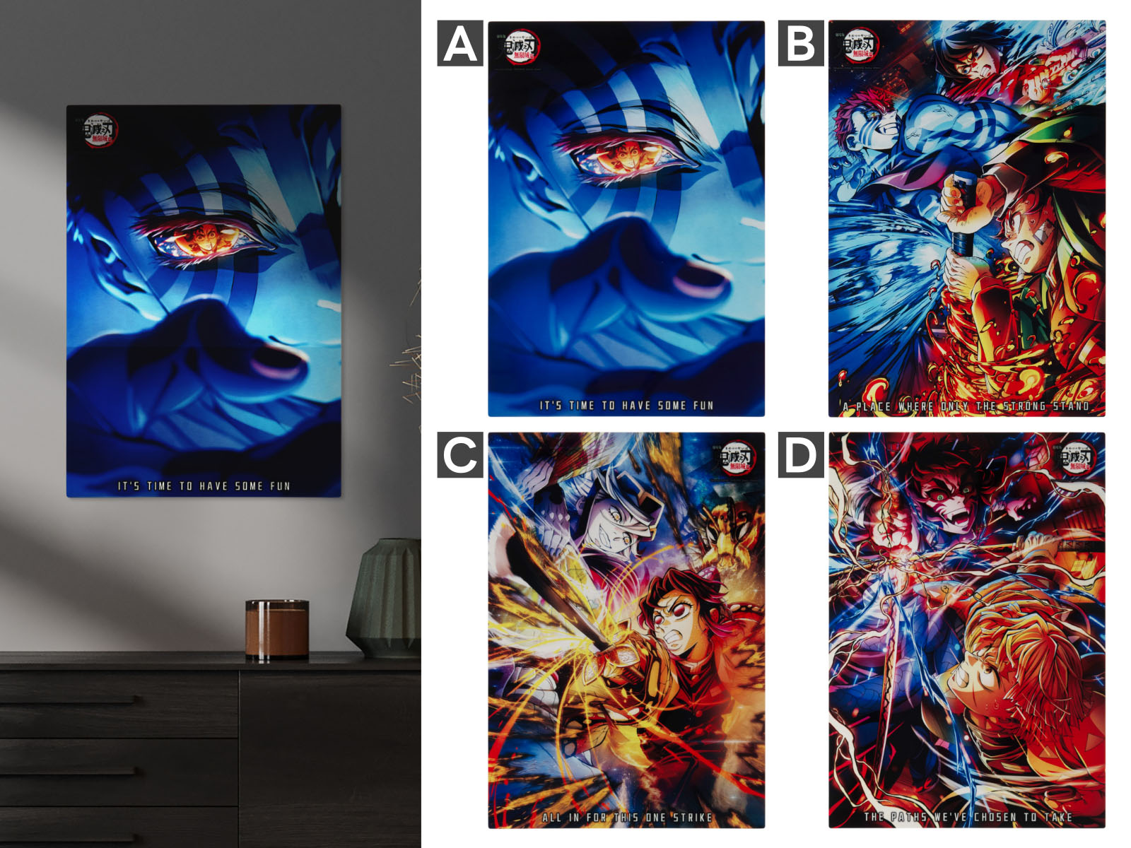 2025年全臺動畫票房冠軍的《劇場版「鬼滅之刃」無限城篇 第一章 猗窩座再襲》,多款宣傳視覺圖獲得粉絲熱烈回響,這次精選「猗窩座眼中映射炭治郎身影」、「炭治郎、水柱冨岡義勇vs.猗窩座」、「蟲柱胡蝶忍vs童磨」、「善逸vs.獪岳」這四款極富故事性及視覺衝擊感的畫面,直接升級為色彩豐富且保存性高的鋁合金金屬海報,將所有的熱血及感動完整收藏。