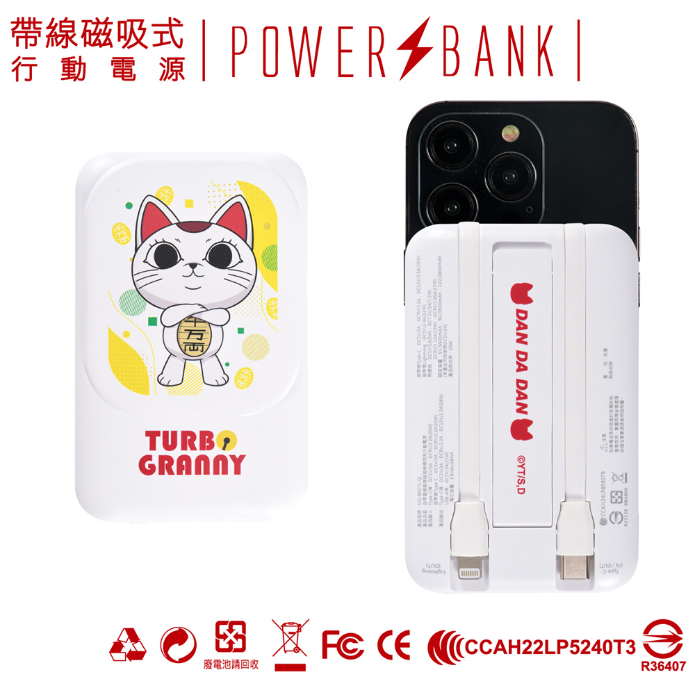 《膽大黨》自帶雙線數顯磁吸無線閃充行動電源 原價NT$1,580 尺寸:W6.5×H10.4×D1.9cm