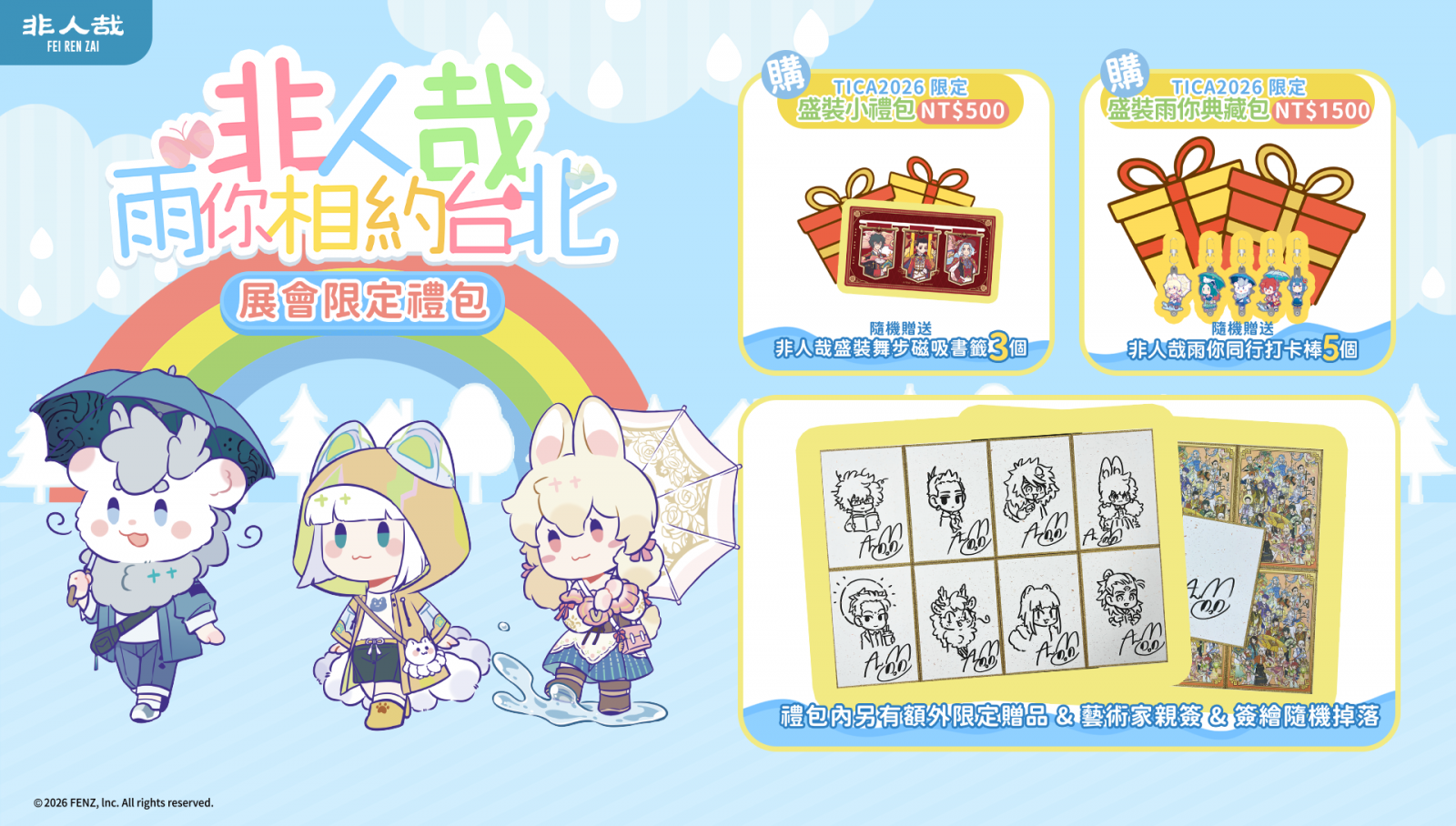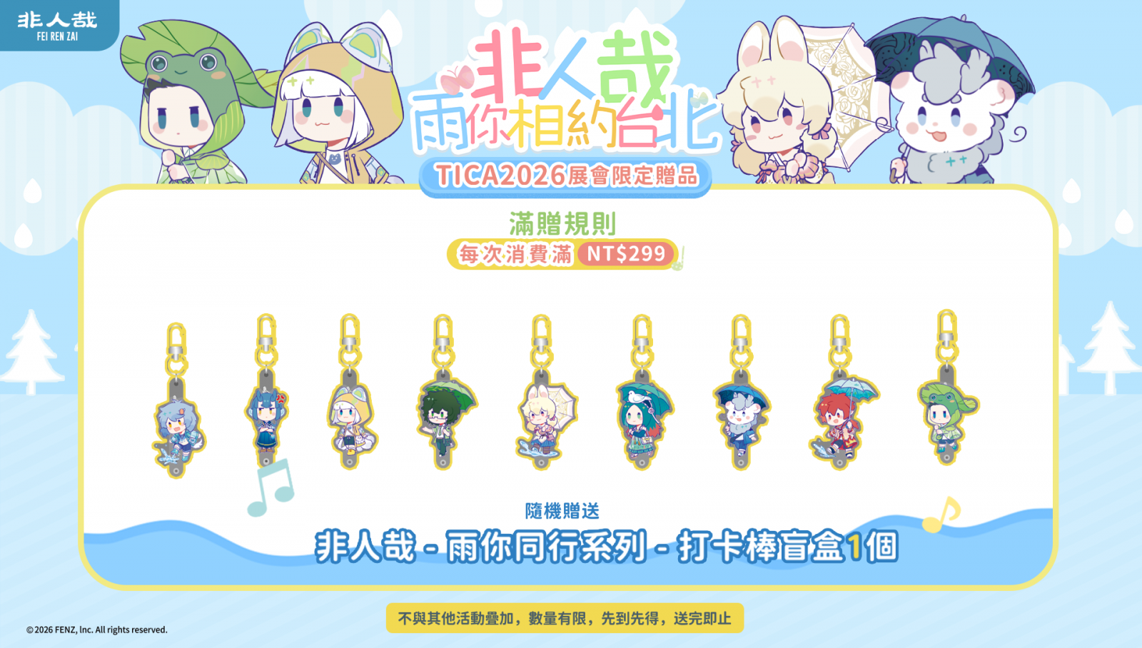 - TiCA2026 限定 - 盛裝雨你典藏包:一次蒐羅「盛裝舞步」系列一盒14個圓形徽章,並包含 5 支「雨你同行」系列展會限定打卡棒,以及多款超值週邊和紀念品,同樣每日限量,先到先得。