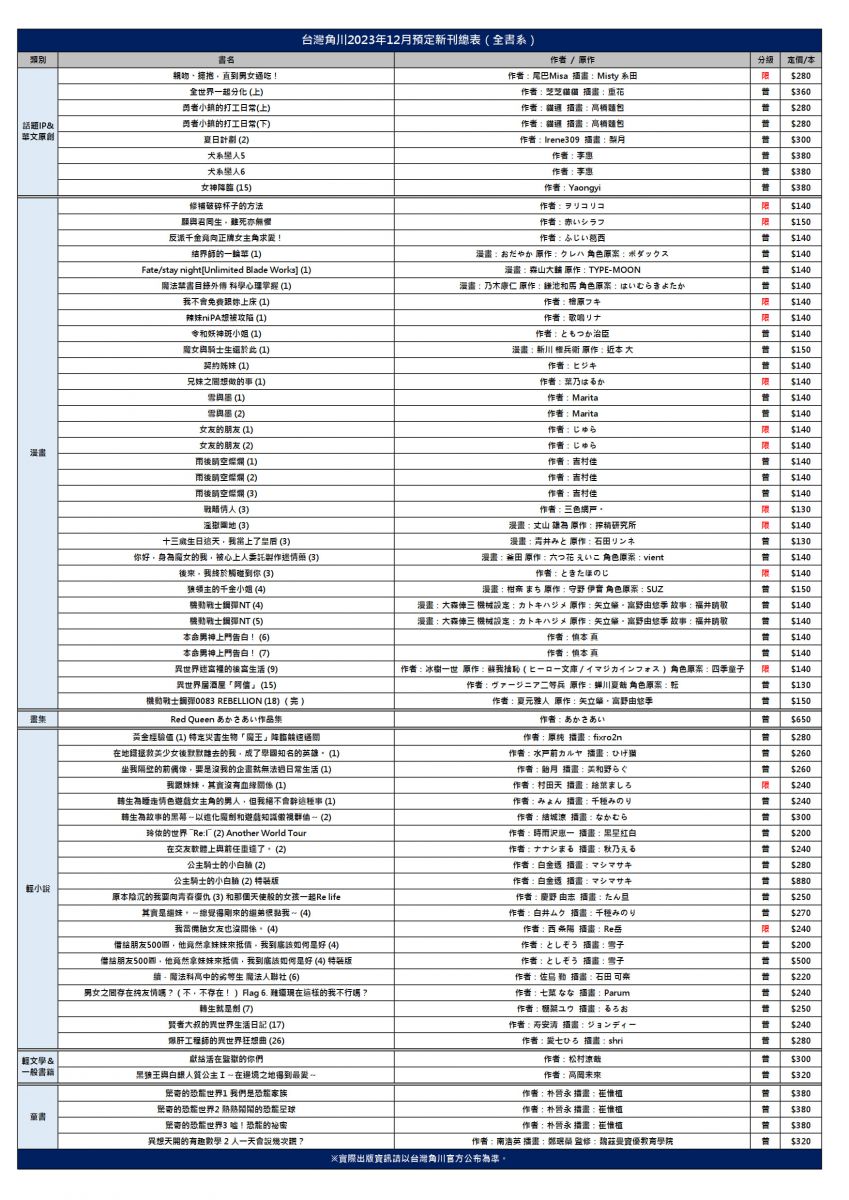 【完整書單】正確出書日請以台灣角川官方公布為準