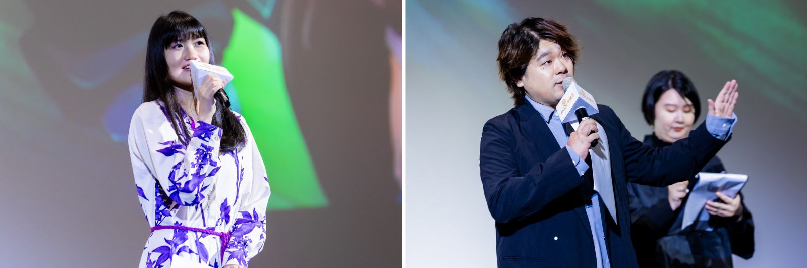 ▲《「鬼滅之刃」絆之奇蹟,邁向柱訓練》上映首周,聲優胡蝶忍聲優—早見沙織(左),以及嘴平伊之助聲優—松岡禎丞(右)來台與粉絲見面!