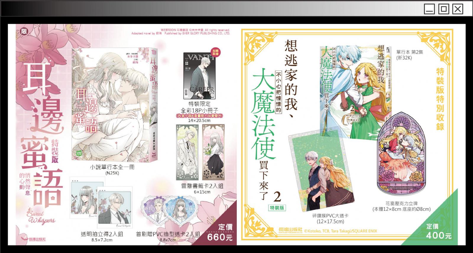 另外購買原創作品小說或漫畫任兩本,即送隨機花伴應援小卡2入組乙份,單筆消費不累送。以上特典數量有限,送完為止。