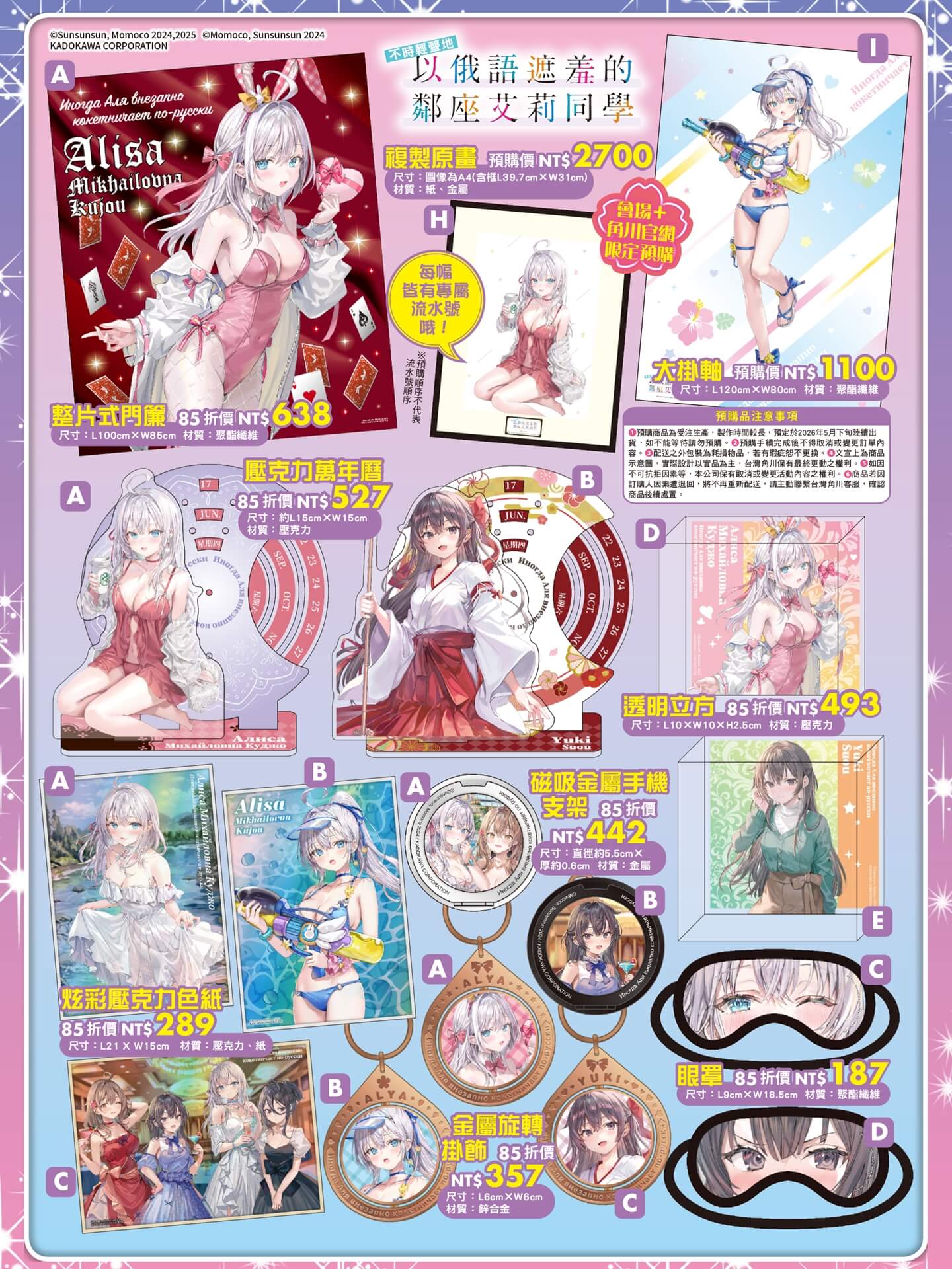 台灣角川2026台北國際動漫節【首賣精品】《不時輕聲地以俄語遮羞的鄰座艾莉同學》系列,共17款