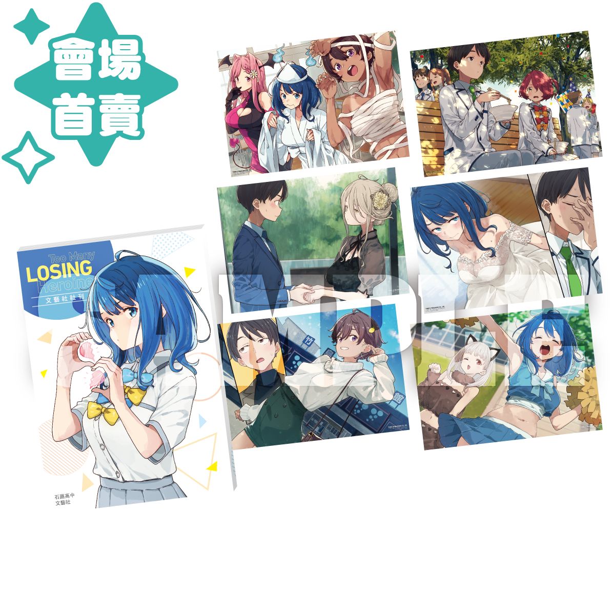 本次與以往不同,特別新推出「隨機」系列商品,匯集三大熱門作品,讓讀者粉絲能在現場體驗收集的樂趣!其中兩款為簽名會作品《惡靈剋星》與《敗北女角太多了!》;《惡靈剋星》以炫亮徽章的形式商品化,共分「酷酷ver.」與「帥帥ver.」,總計8種圖面,精選自新翔子的精美彩圖製成;《敗北女角太多了!》則推出壓克力小立牌,總計10種圖面,Q版的圖樣帶來截然不同的趣味,10款中有1款為隱藏版,能否抽中就考驗著粉絲們的手氣!另外提醒讀者,本款隨機小立牌也能與《敗北女角太多了!》第8集首刷限定版的附錄「Q版壓克力立牌組」共用底座喔!隨機商品的最後一款為超人氣國人作品《觸摸的練習契約》的壓克力小立牌,總計6種圖面,都是精選自MAE所繪製的精美Q版彩圖,6款中有1款為隱藏版!三款隨機商品除了隨機購買一入外,想一次收集完全部圖面的粉絲也可以選擇整盒購買的方式喔!商品數量有限,想收藏的讀者可千萬別錯過這次機會!