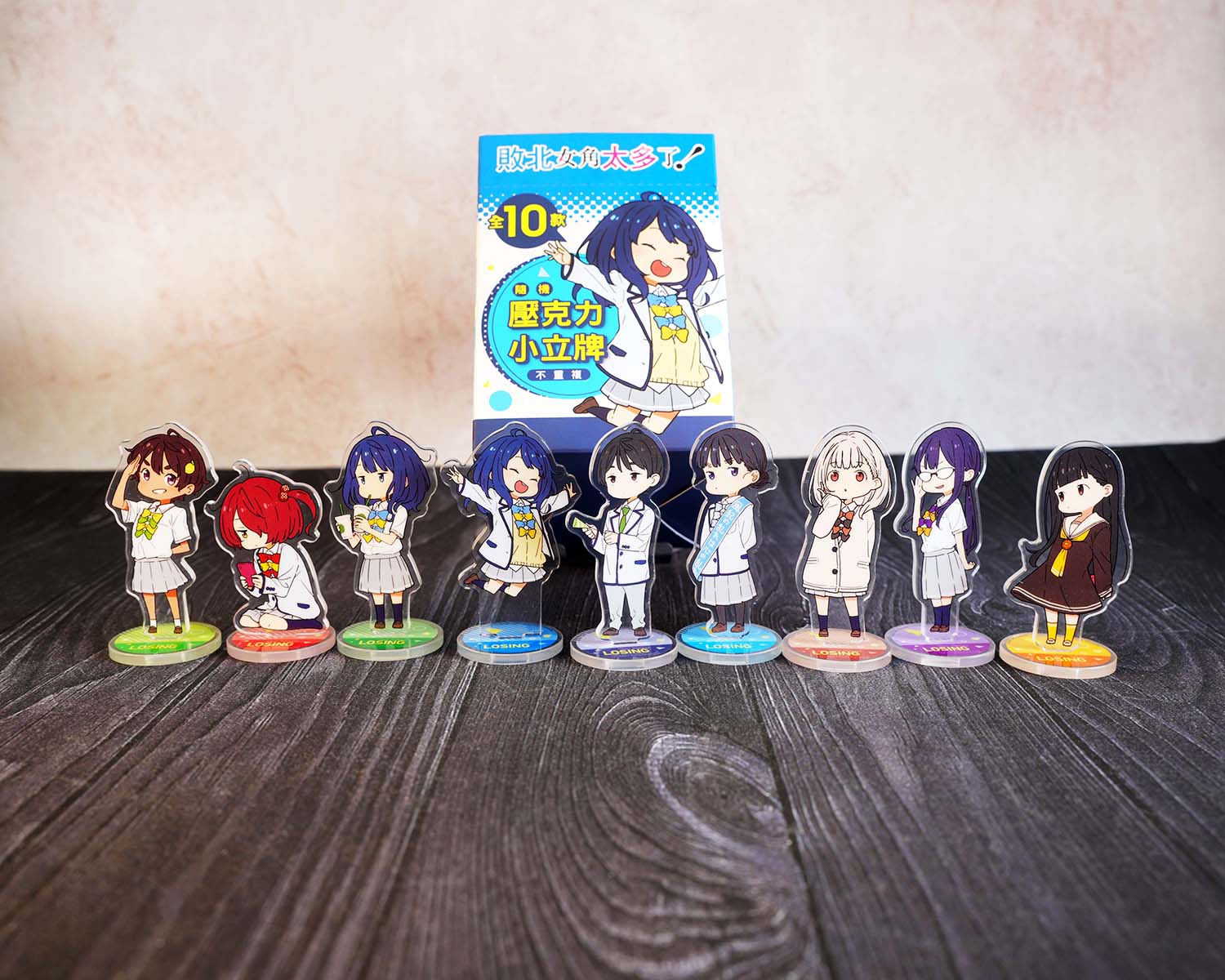 ▲《敗北女角太多了!》隨機壓克力小立牌,能與先前書籍附錄共用底座!