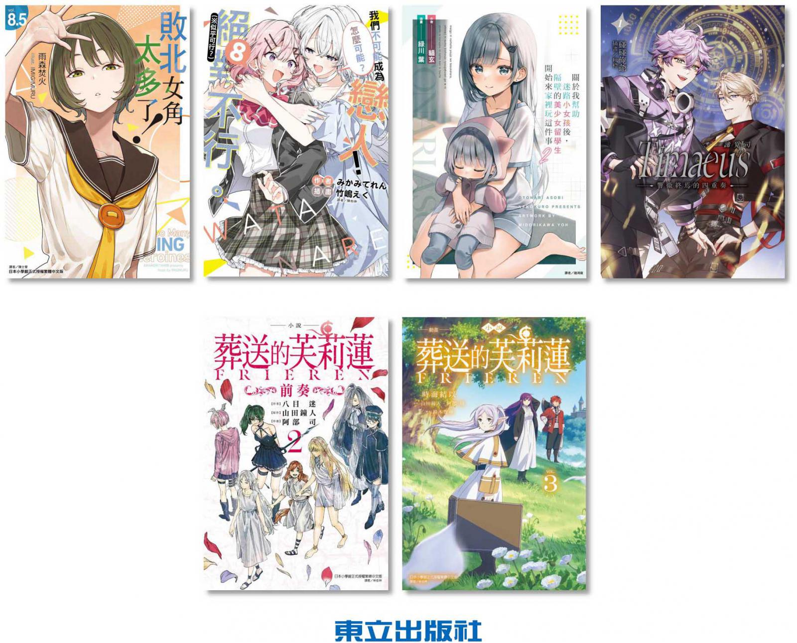 動畫化超強作品《敗北女角太多了!》第8.5集和《我們不可能成為戀人!絕對不行。 (※似乎可行?)》第8集都將推出首刷限定版與豪華首刷限定版,超豐富的附錄等你來收藏喔!而VTuber團體「Timaeus諦覓司」的外傳小說《諦覓司:響徹終焉的四重奏》第1集也將盛大登場!矚目續刊《小說 葬送的芙莉蓮 ~前奏~》第2集、《小說 動畫 葬送的芙莉蓮》第3集與《關於我幫助迷路小女孩後,隔壁的美少女留學生開始來家裡玩這件事》第2集也都會在動漫節隆重上市!