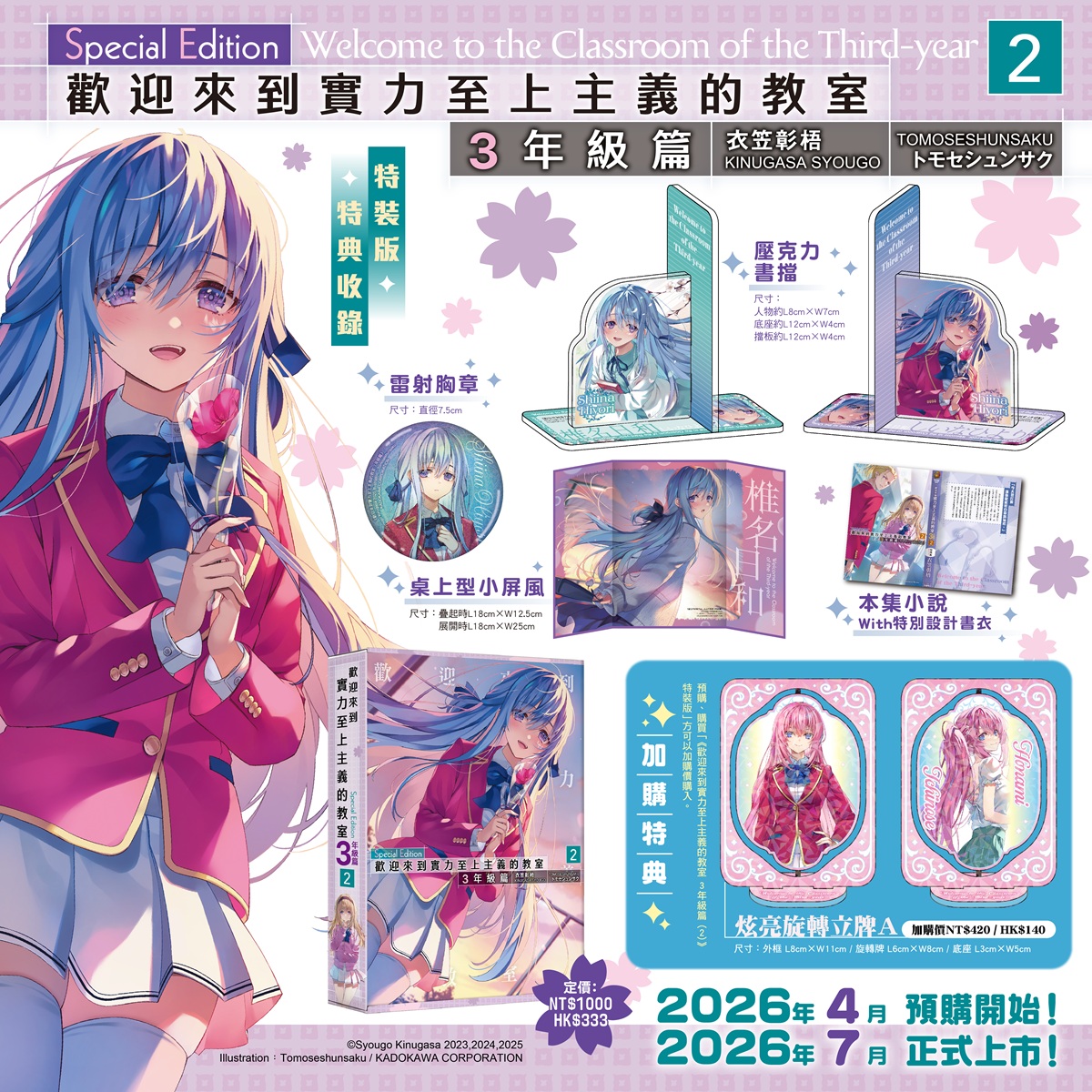 台灣角川將於2026年7月推出《歡迎來到實力至上主義的教室 3年級篇 (2)》特裝版&加購特典