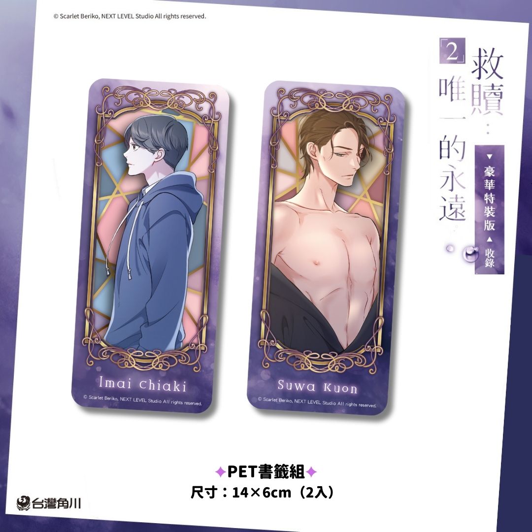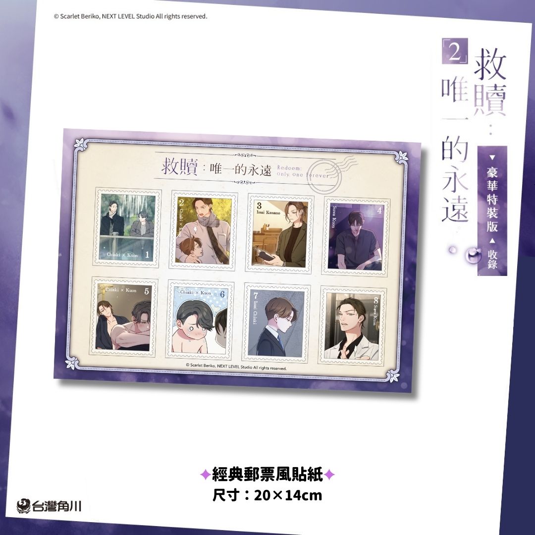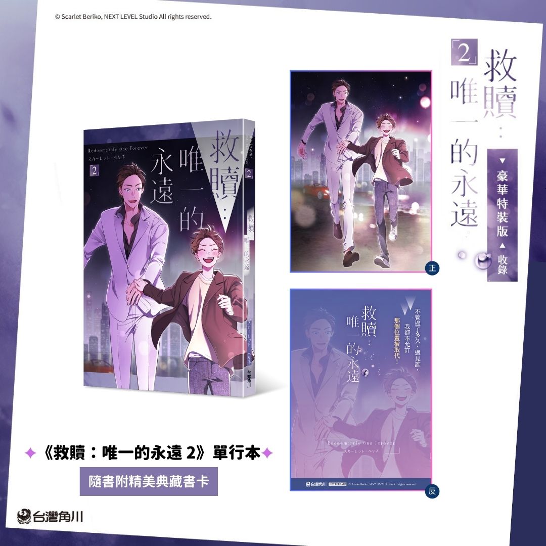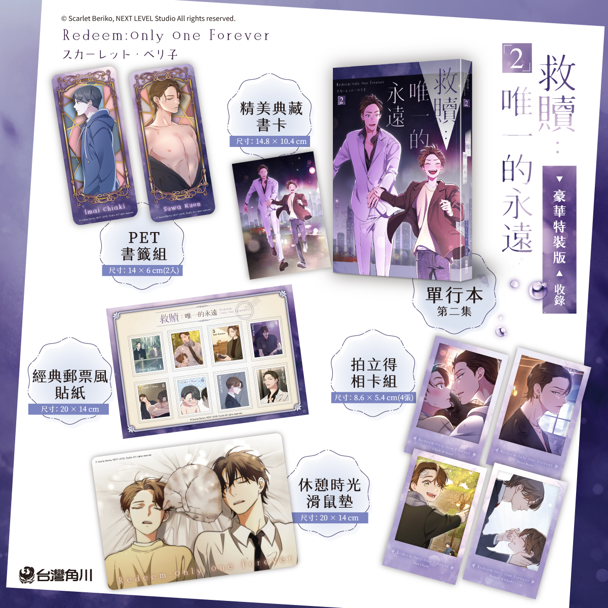 只要待在你身邊,真的就能擁有相同的未來嗎!?《救贖:唯一的永遠 2》【特裝版】隨書收藏「精美典藏書卡」、重現千曉和久遠之間專屬甜蜜記憶和情感軌跡的「拍立得相卡組」、「PET書籤組」、收藏價值滿滿的「經典郵票風貼紙」以及在日常工作休息中時也能陪伴你的「休憩時光滑鼠墊」,所有特典將完美收納於「特裝版珍藏書盒」中。《救贖:唯一的永遠 2》將於10月10日在2025高雄動漫節台灣角川攤位以及官網獨家首賣,並於10月13日在各大實體、網路書店正式發售。喜愛《救贖:唯一的永遠》的讀者,千萬不要錯過!